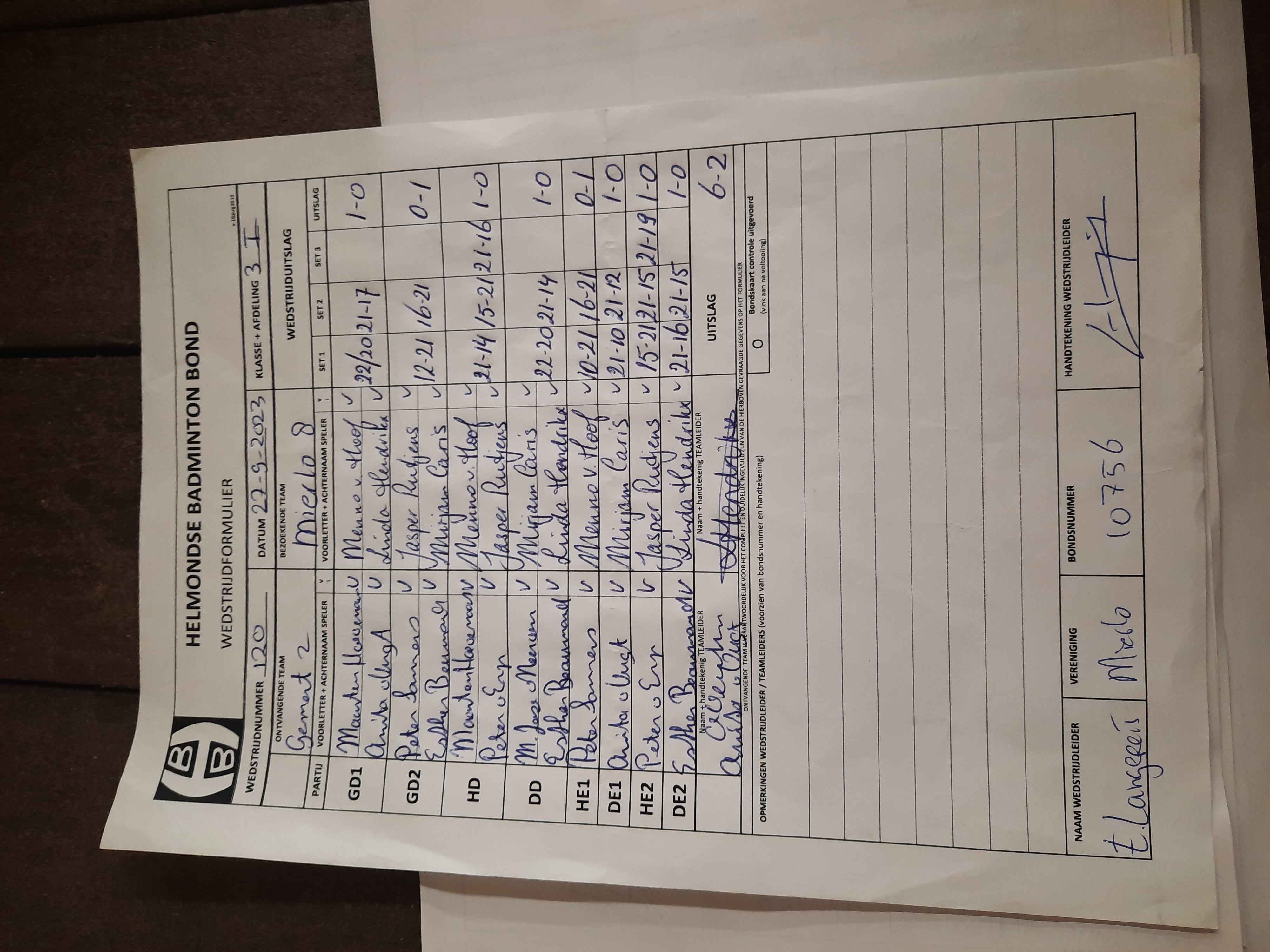 | 117 | wo. 13-09-2023 | ASML 3 | - | Gemert 2 | 4 | 5 - 3 | |||