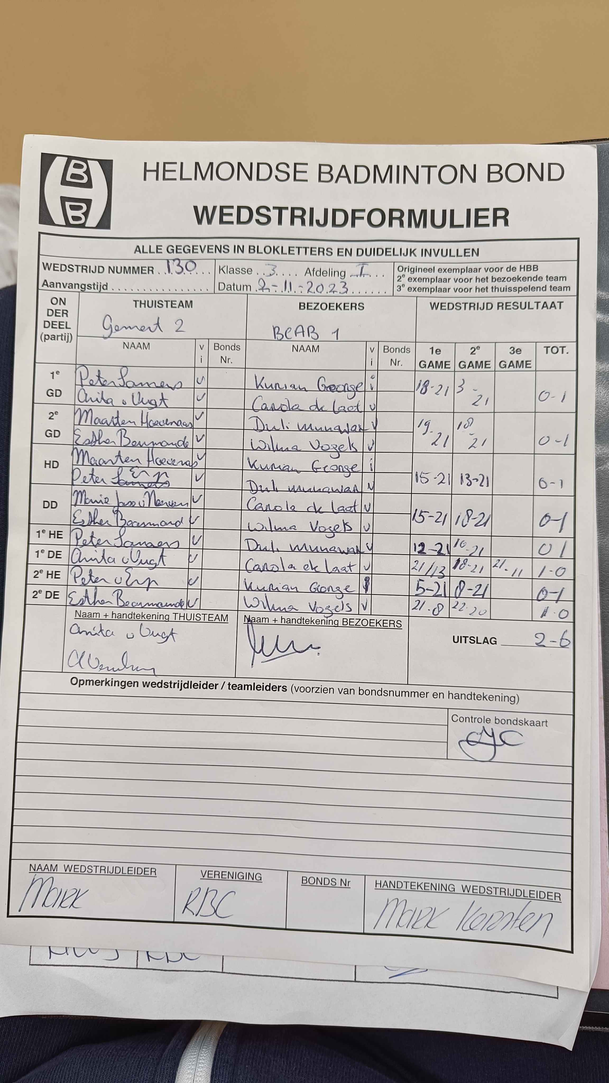 | 130 | do. 02-11-2023 | Gemert 2 | - | BCAB 1 | 14 | 2 - 6 | |||