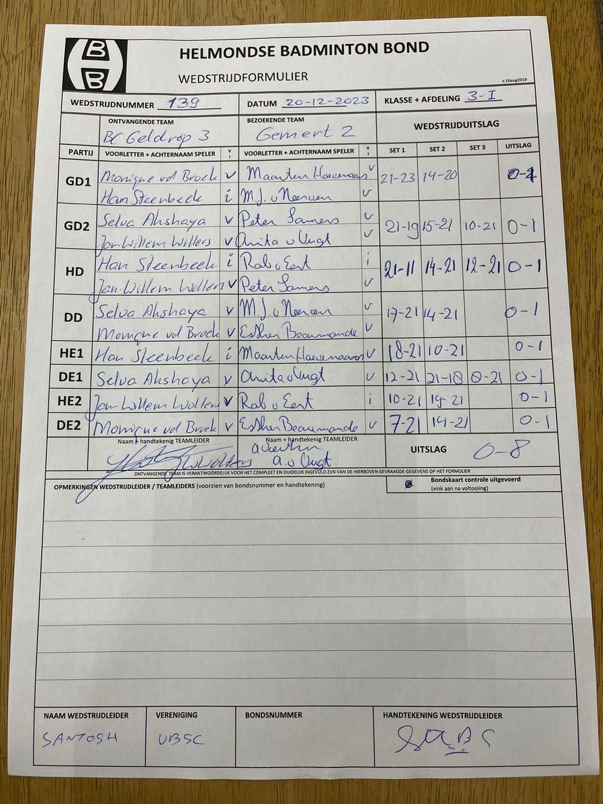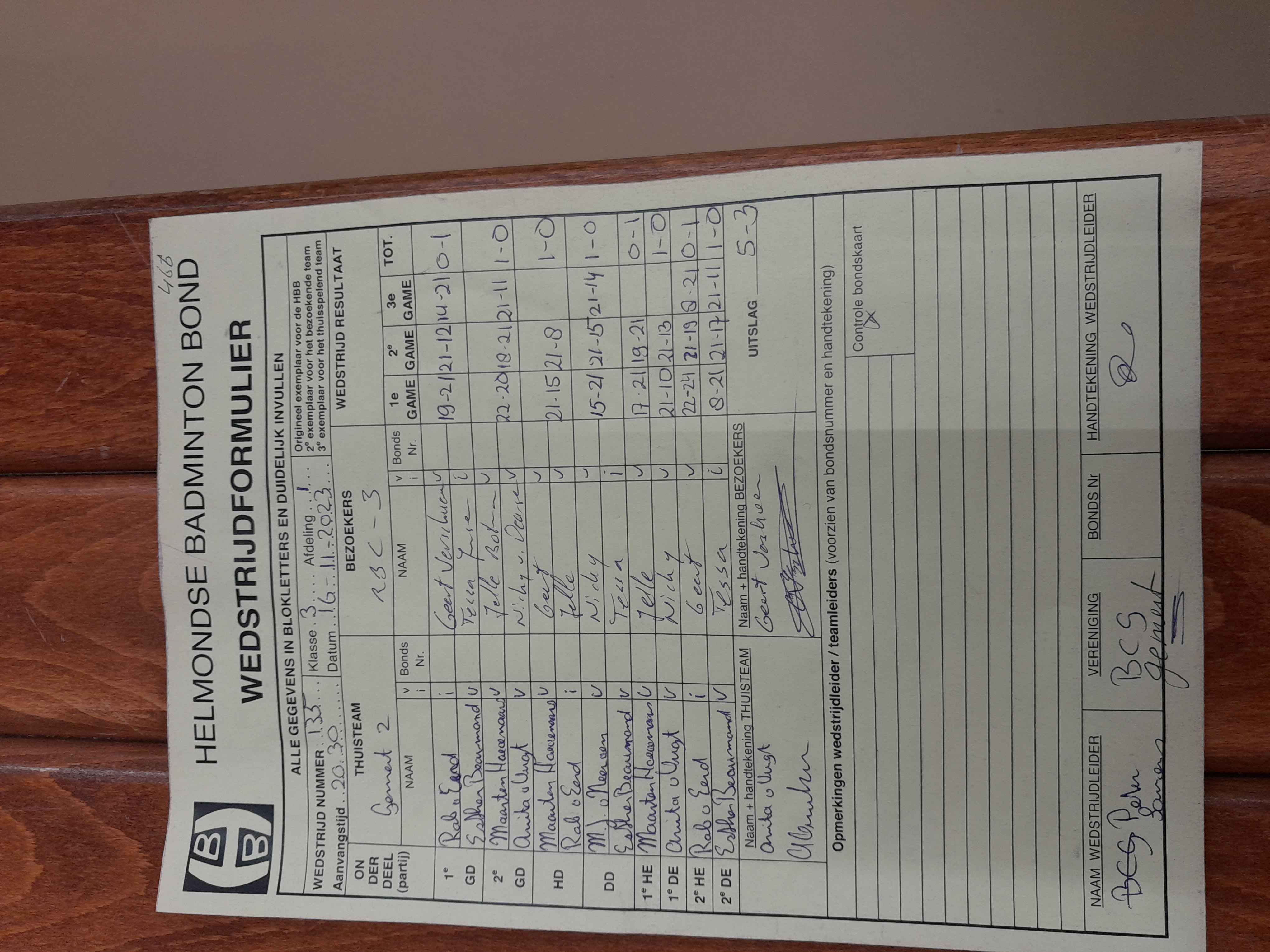 | 135 | do. 16-11-2023 | Gemert 2 | - | RBC 3 | 15 | 5 - 3 | |||