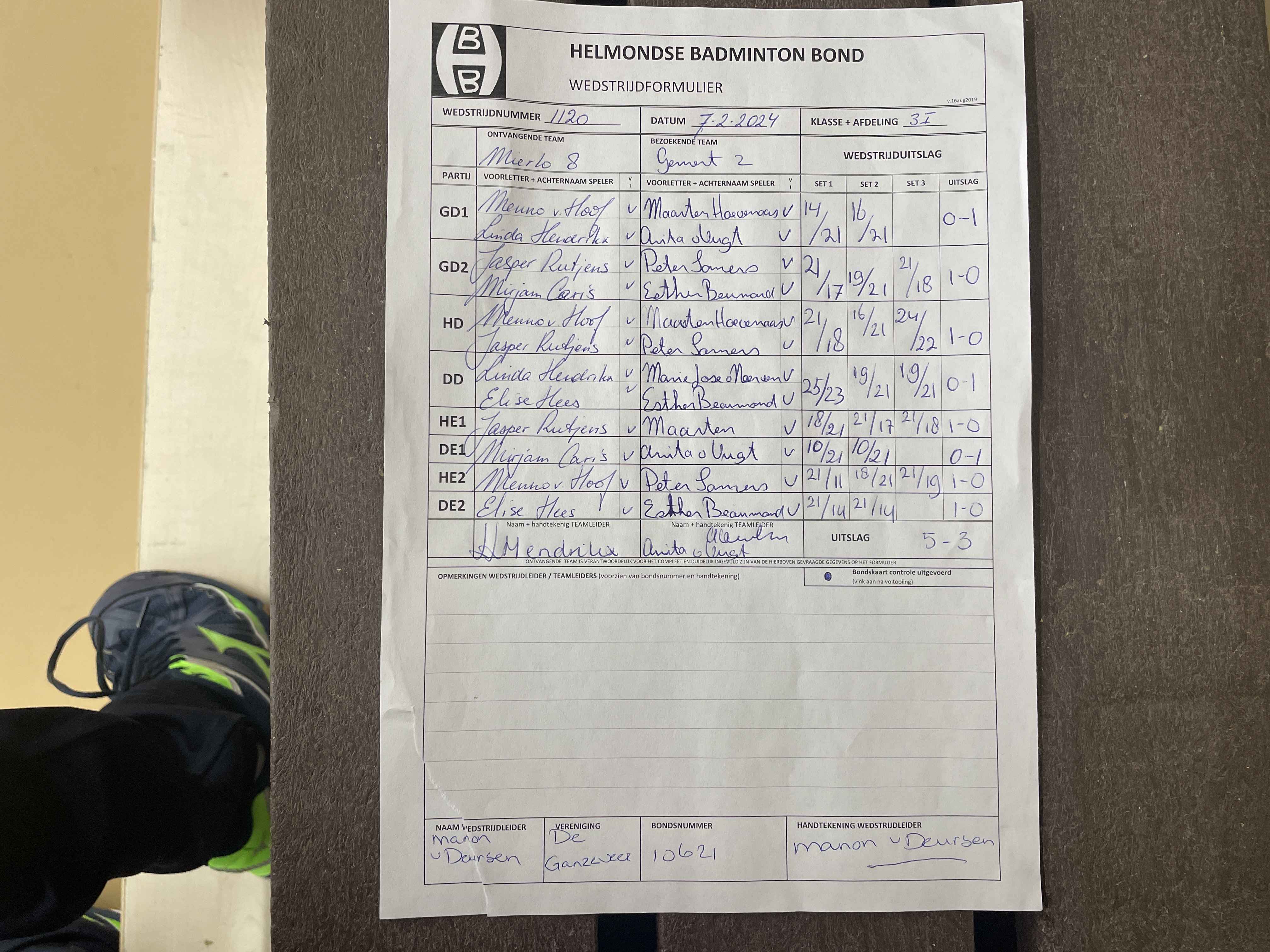 | 1120 | wo. 07-02-2024 | Mierlo 8 | - | Gemert 2 | 11 | 5 - 3 | |||