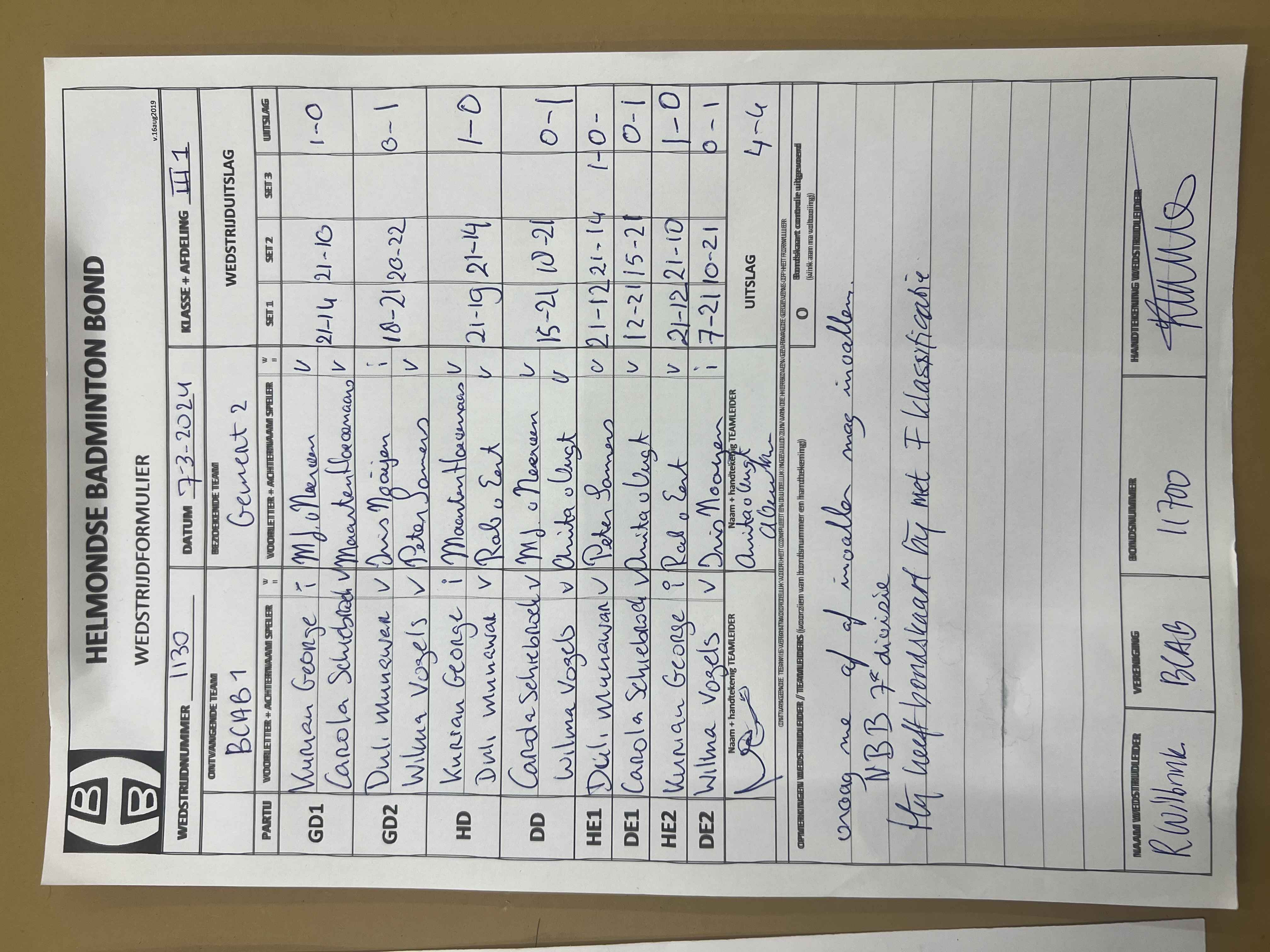 | 1130 | do. 07-03-2024 | BCAB 1 | - | Gemert 2 | 4 | 4 - 4 | |||