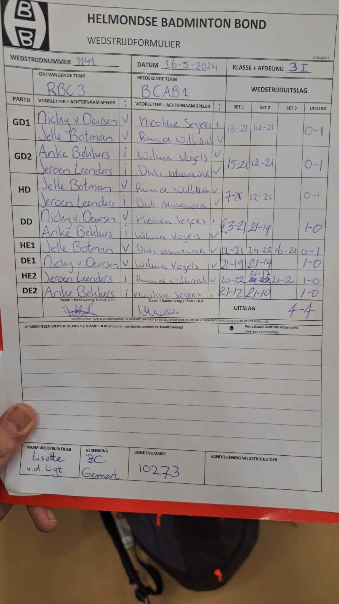 | 138 | wo. 06-12-2023 | Ganzeveer 3 | - | RBC 3 | 15 | 3 - 5 | |||