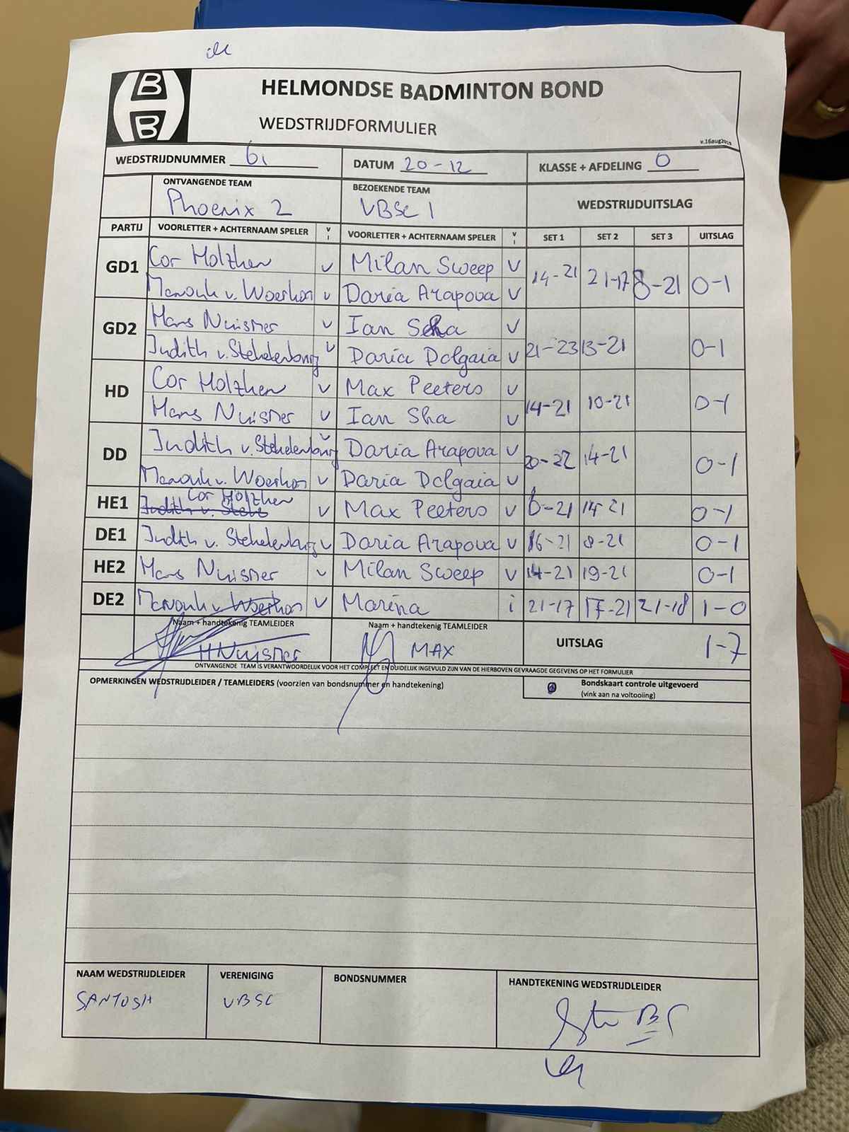 | 61 | wo. 20-12-2023 | Phoenix 2 | - | VBSC 1 | 14 | 1 - 7 | |||