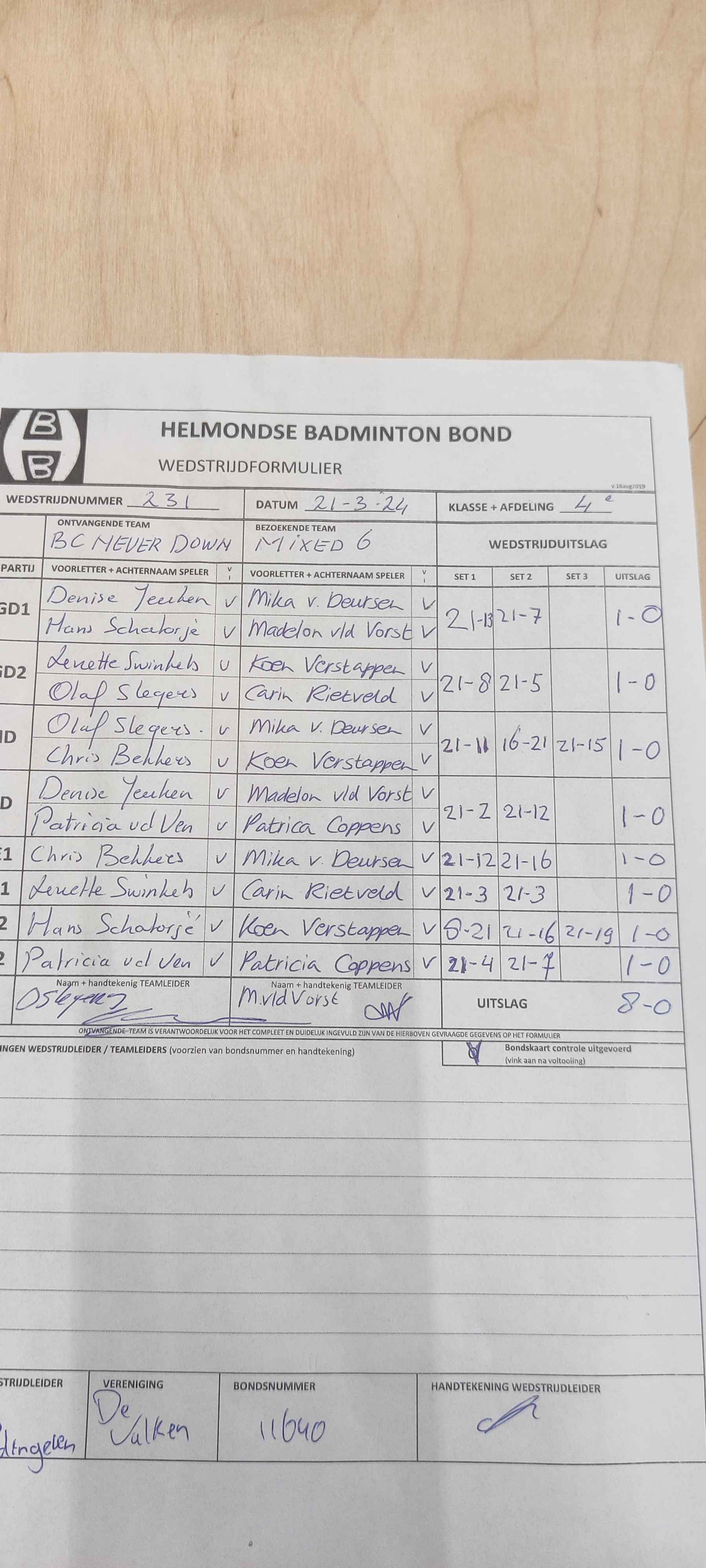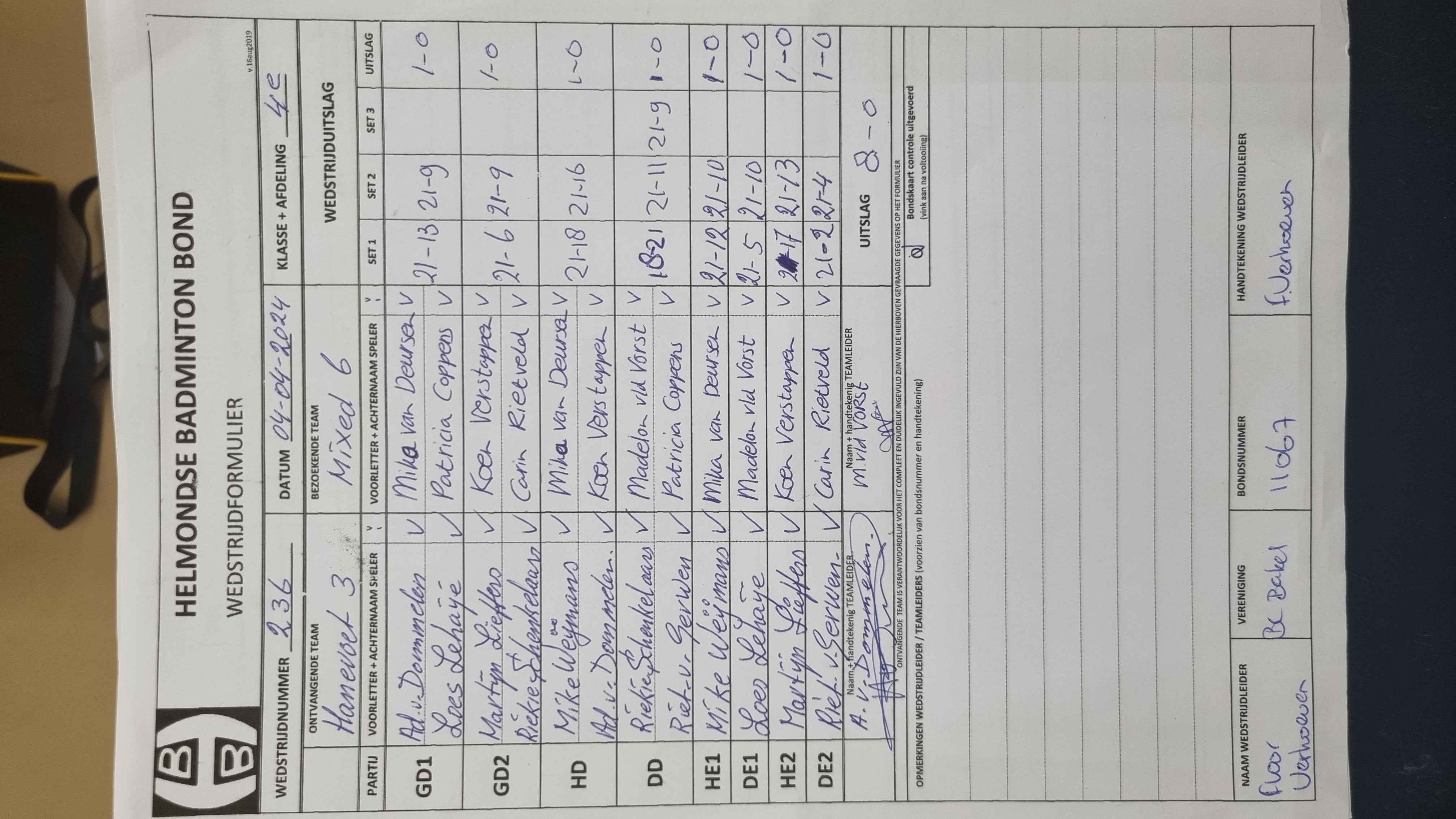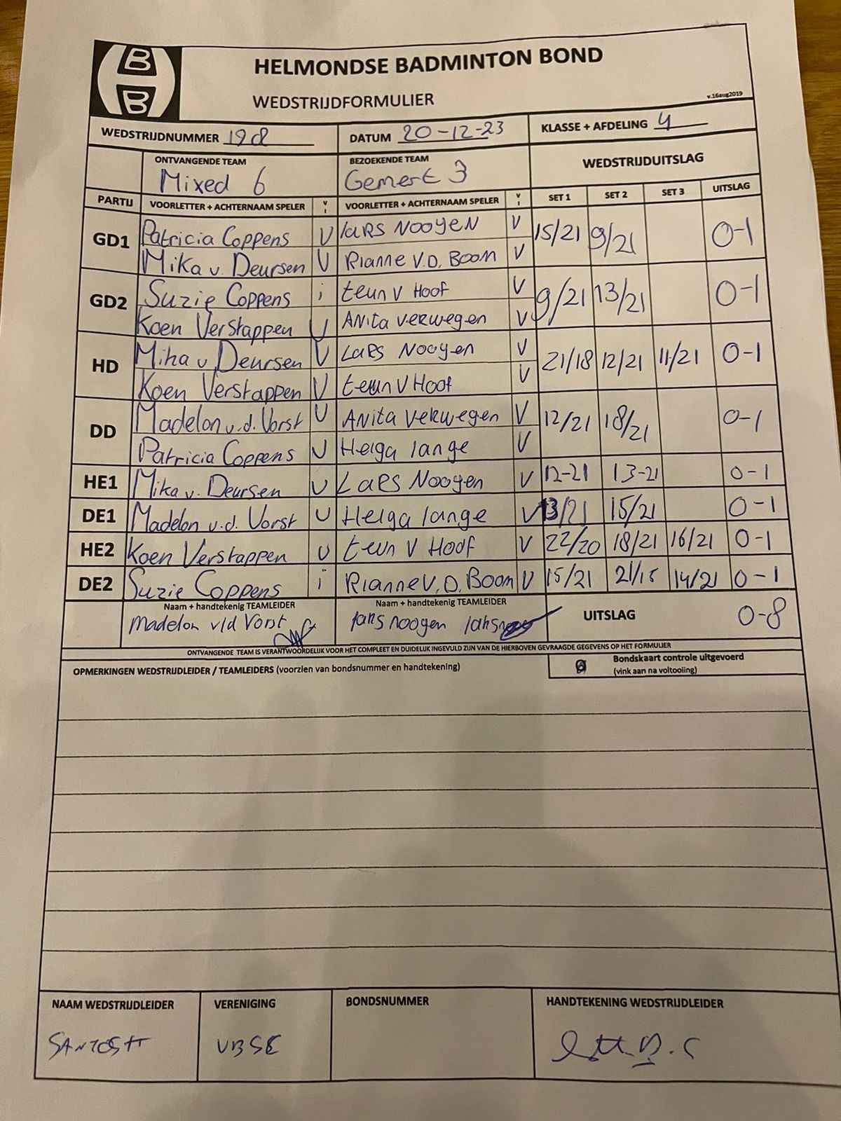 | 198 | wo. 20-12-2023 | Mixed 6 | - | Gemert 3 | 12 | 0 - 8 | |||