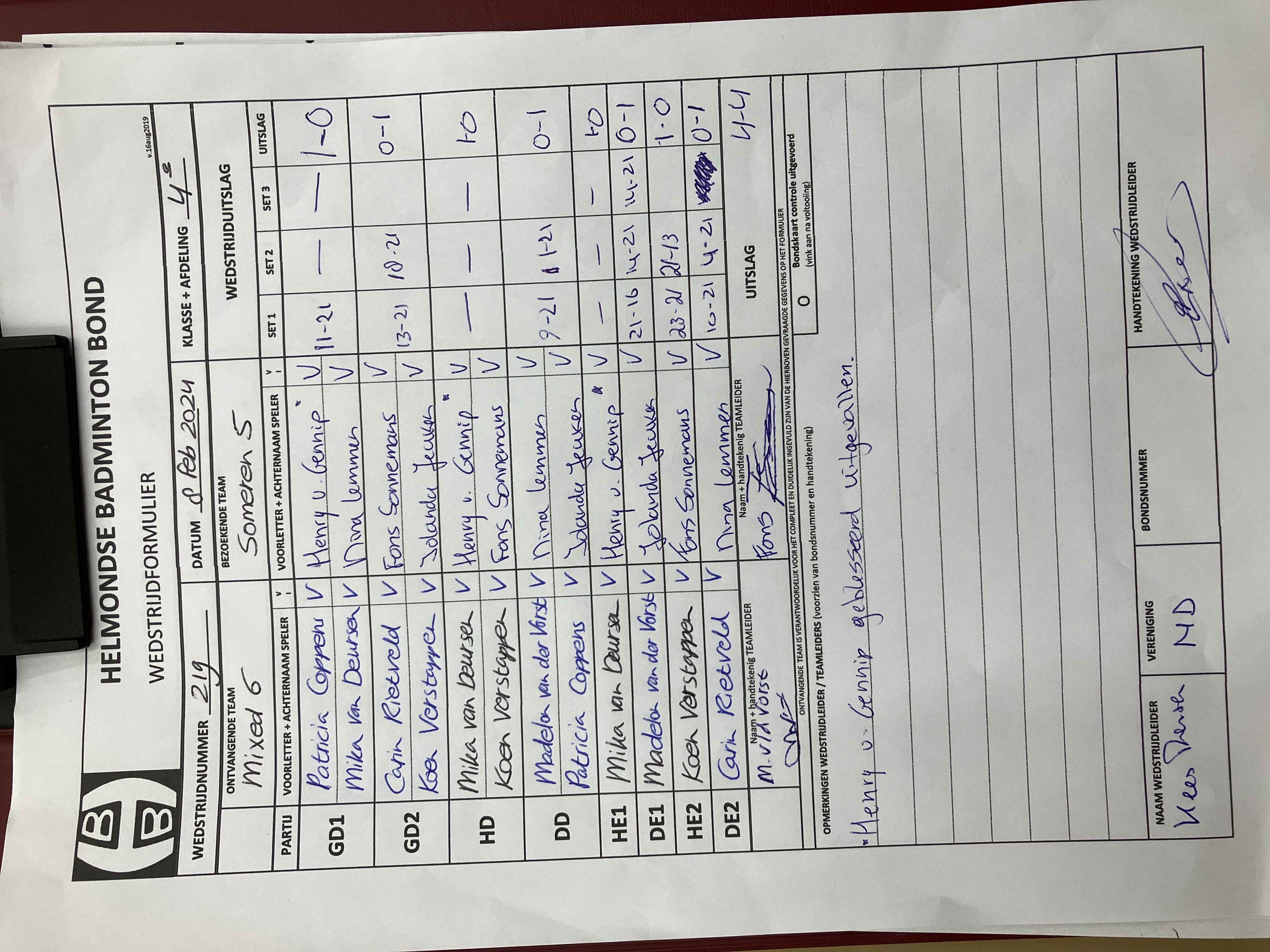 | 219 | do. 08-02-2024 | Mixed 6 | - | Someren 5 | 4 | 4 - 4 | |||