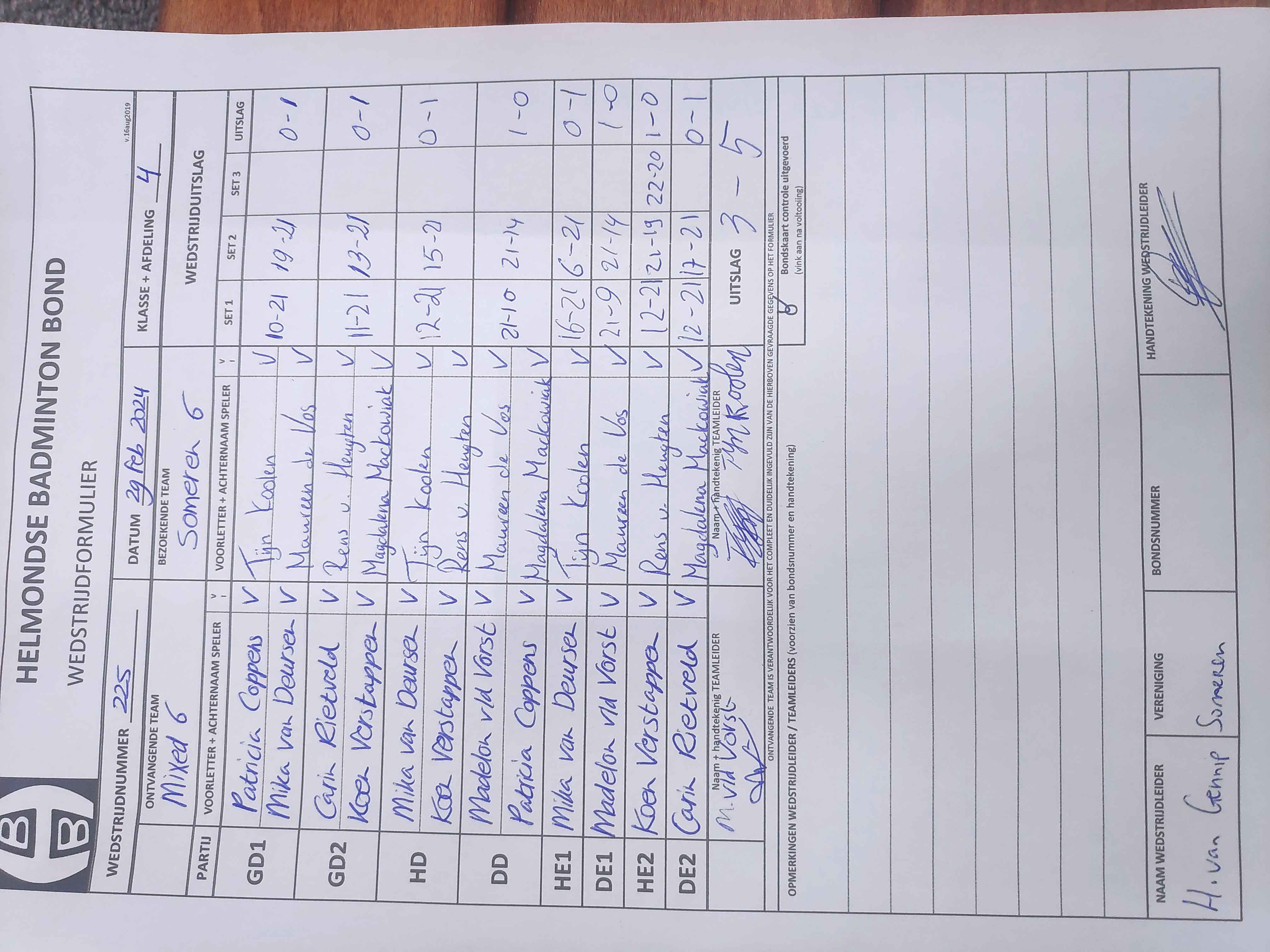 | 225 | do. 29-02-2024 | Mixed 6 | - | Someren 6 | 4 | 3 - 5 | |||
