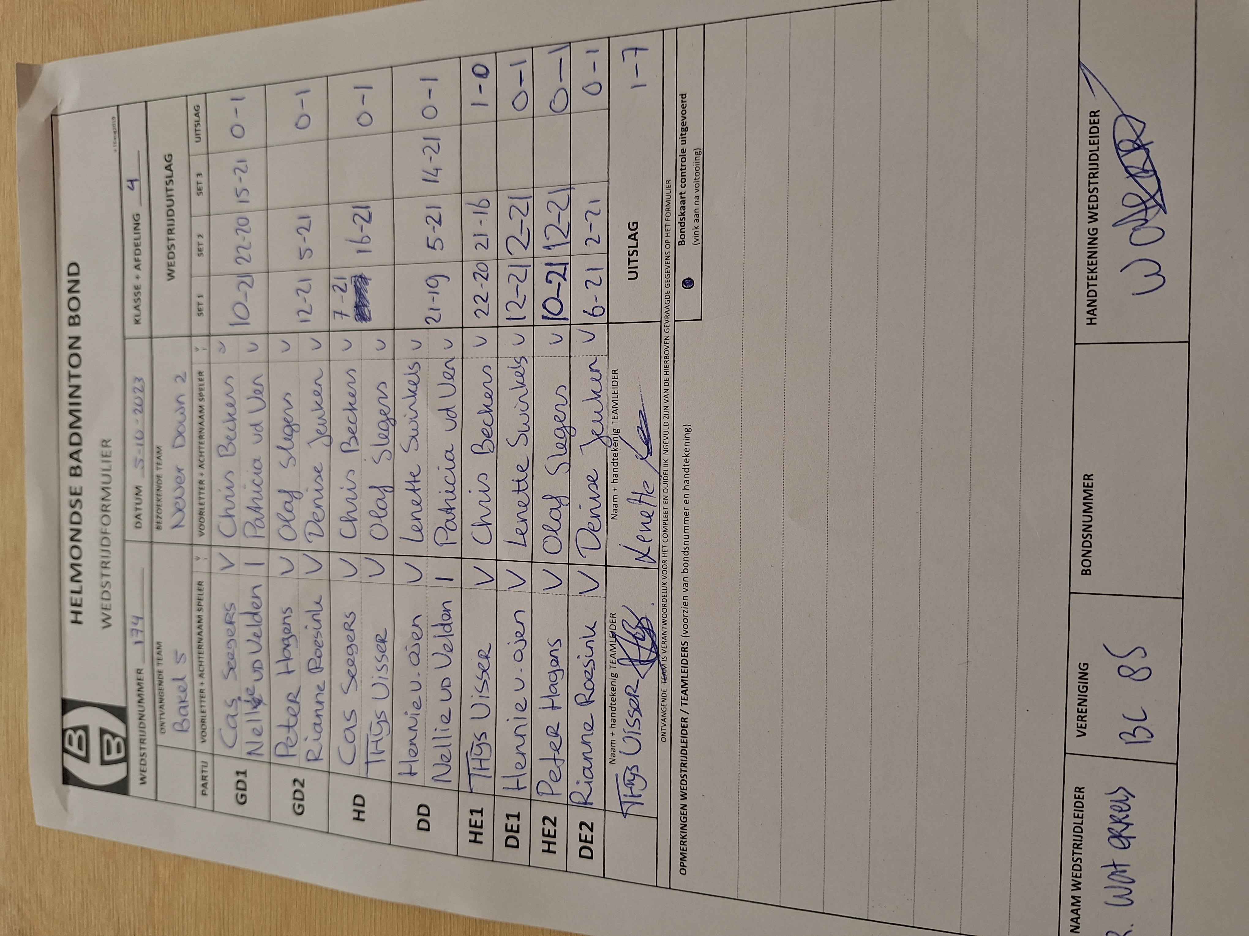 | 174 | do. 05-10-2023 | Bakel 5 | - | Never Down 2 | 4 | 1 - 7 | |||