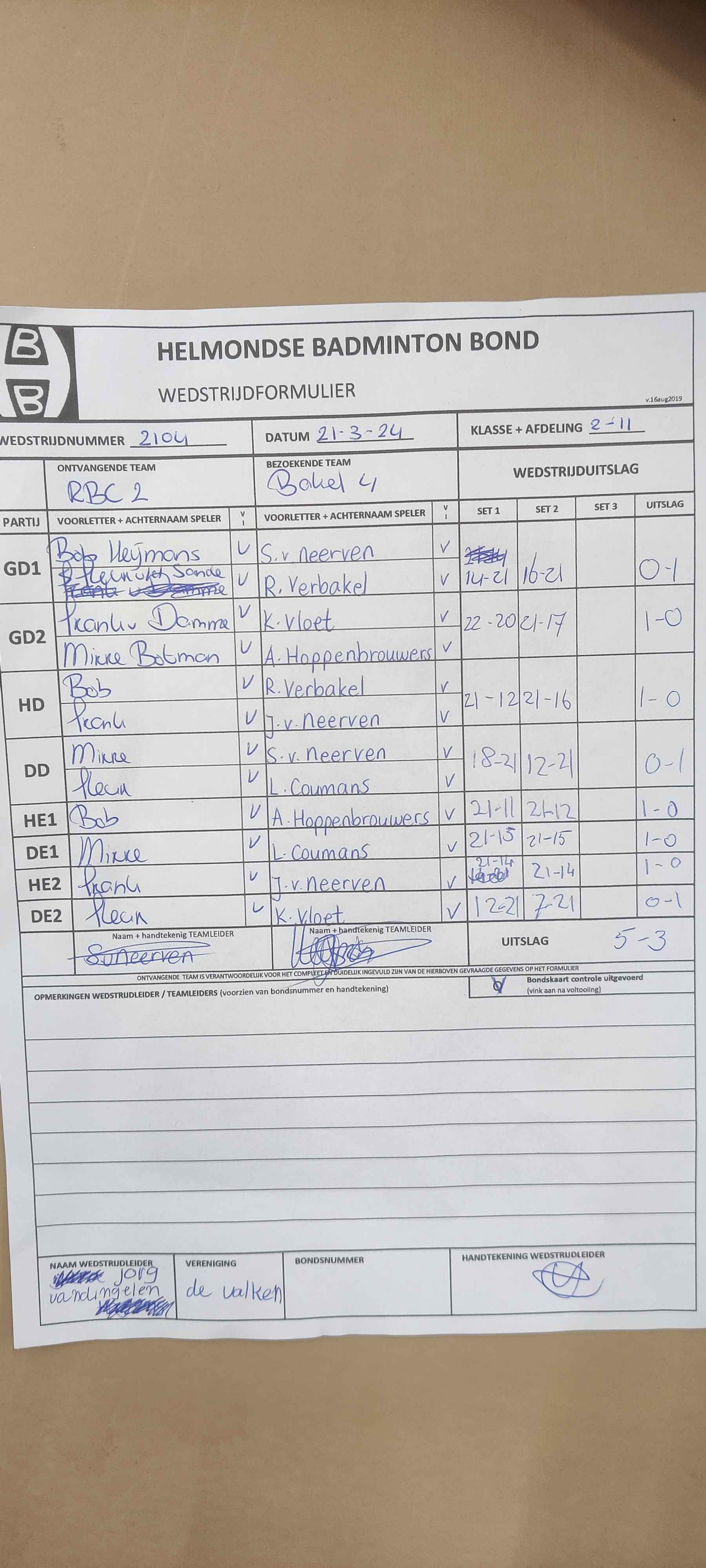 | 2104 | do. 21-03-2024 | RBC 2 | - | Bakel 4 | 11 | 5 - 3 | |||