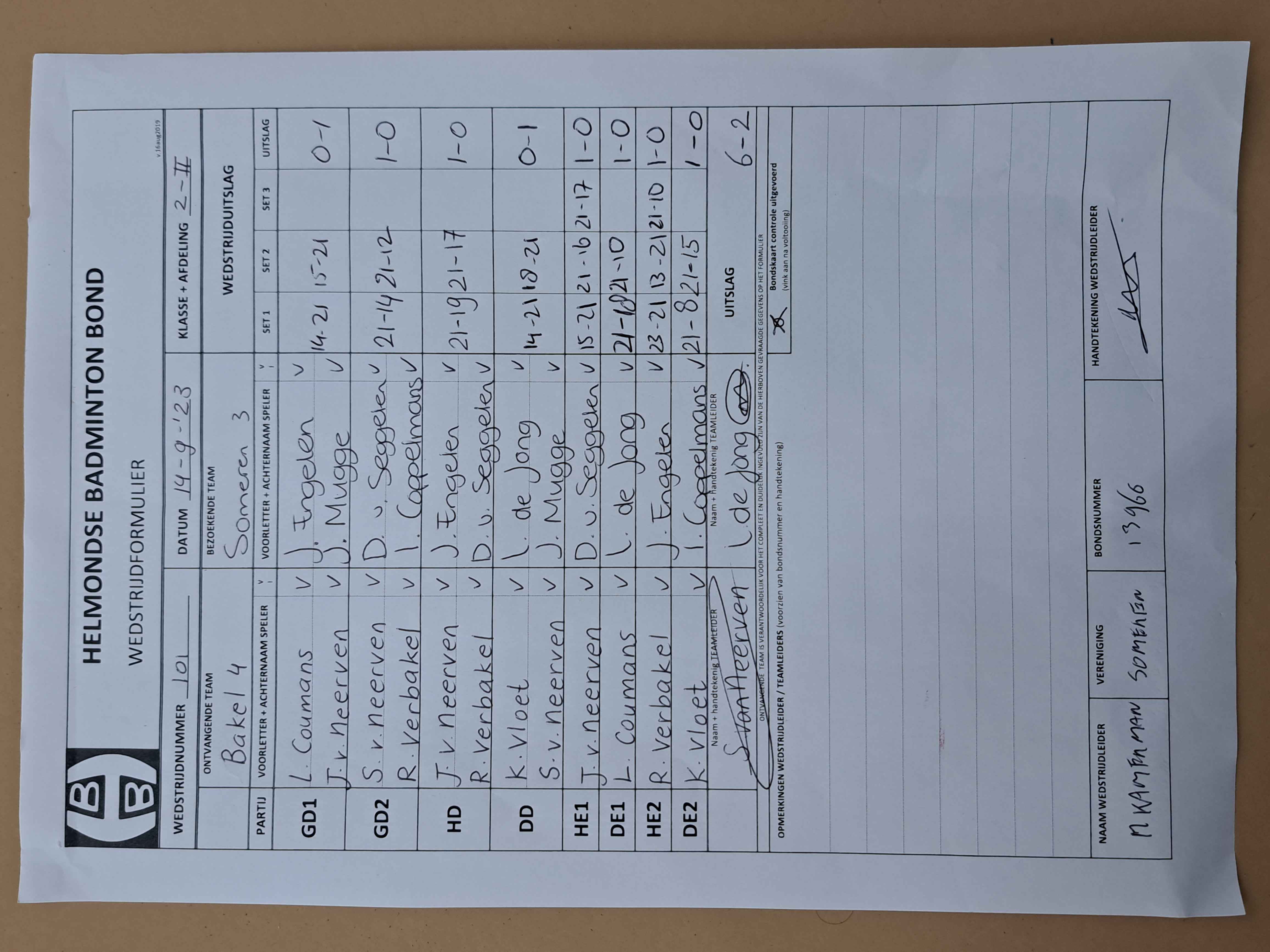 | 101 | do. 14-09-2023 | Bakel 4 | - | Someren 3 | 1 | 6 - 2 | |||
