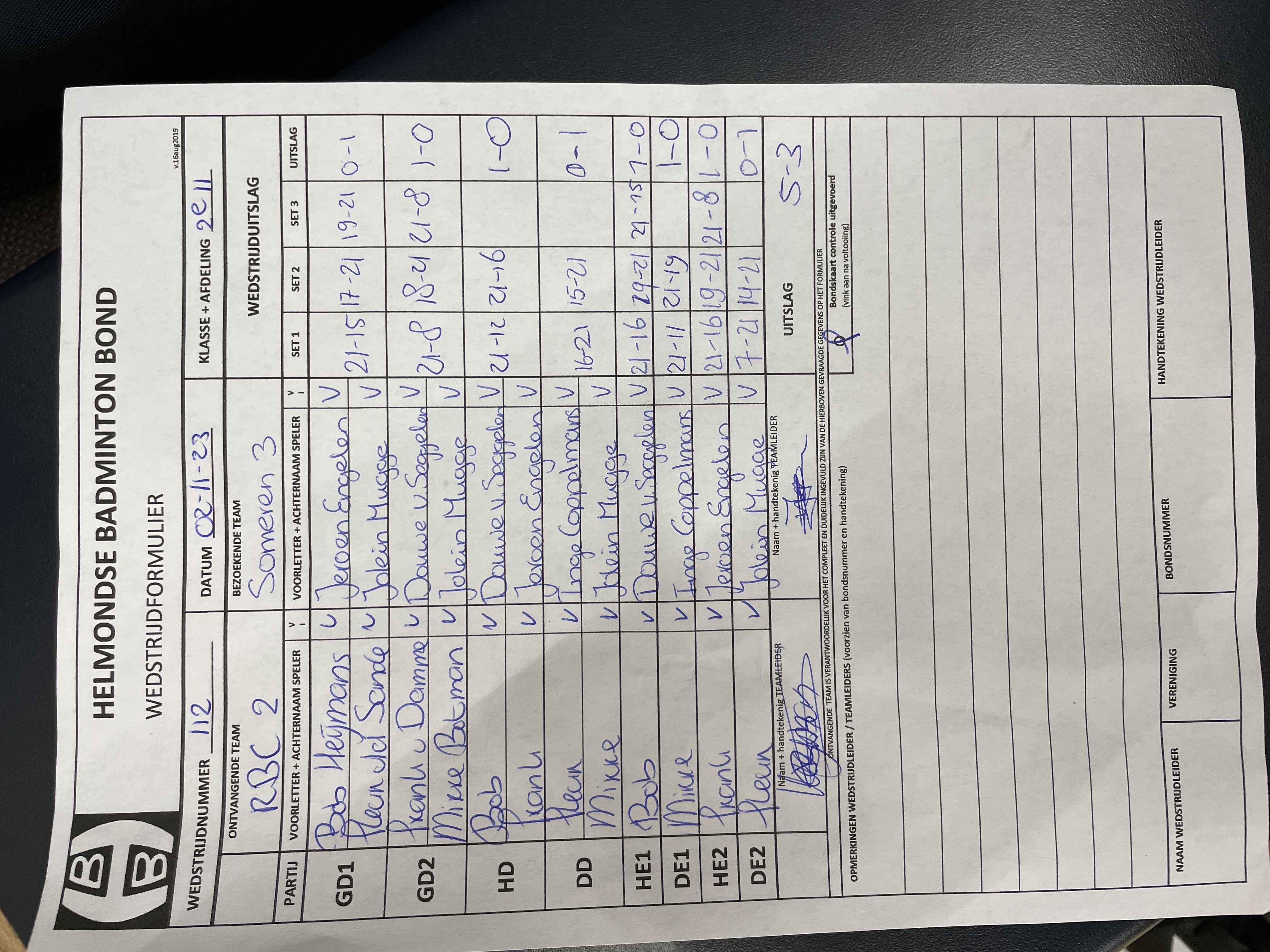 | 112 | do. 02-11-2023 | RBC 2 | - | Someren 3 | 1 | 5 - 3 | |||