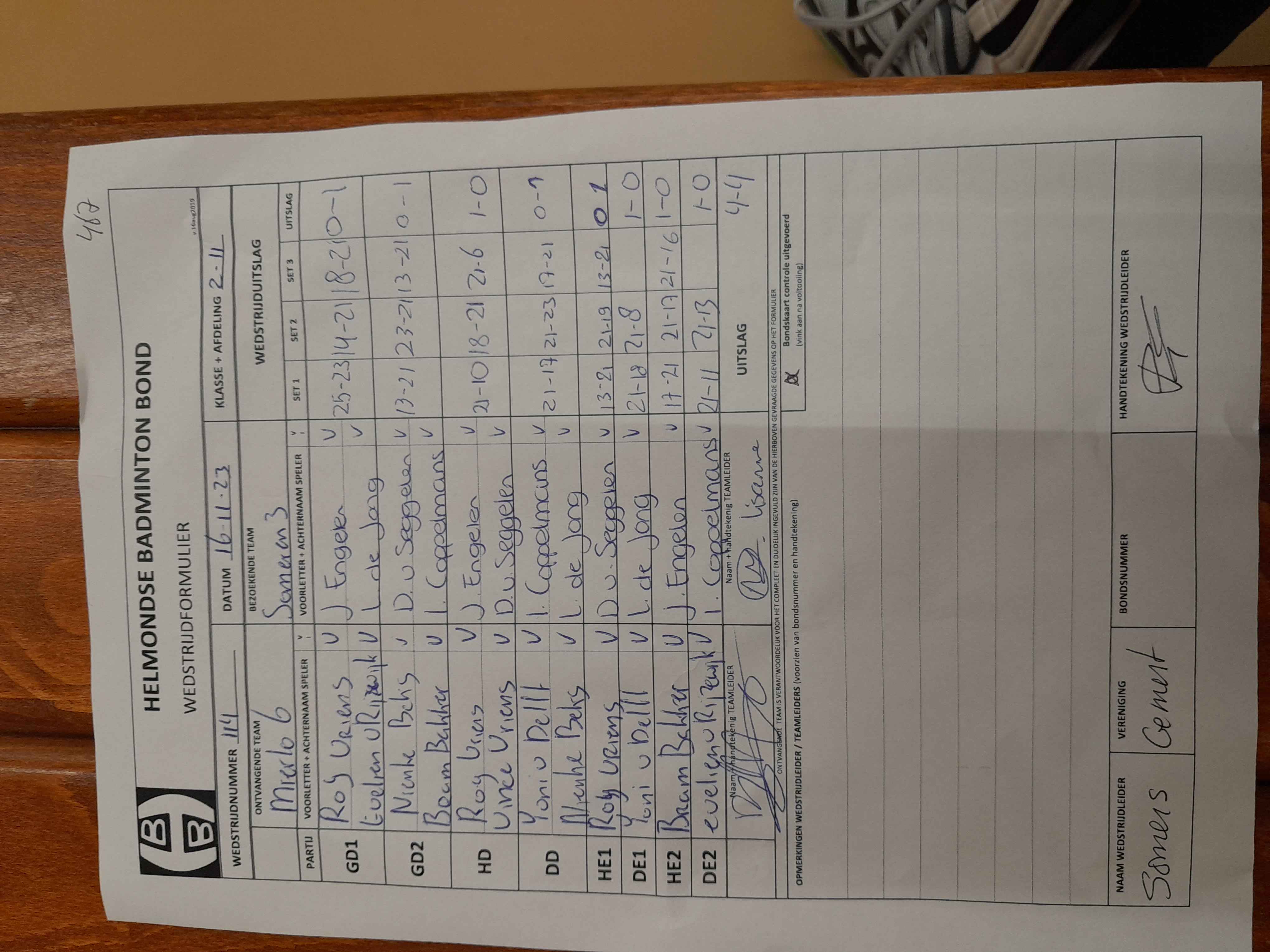 | 105 | do. 21-09-2023 | Someren 3 | - | Mixed 4 | 4 | 3 - 5 | |||