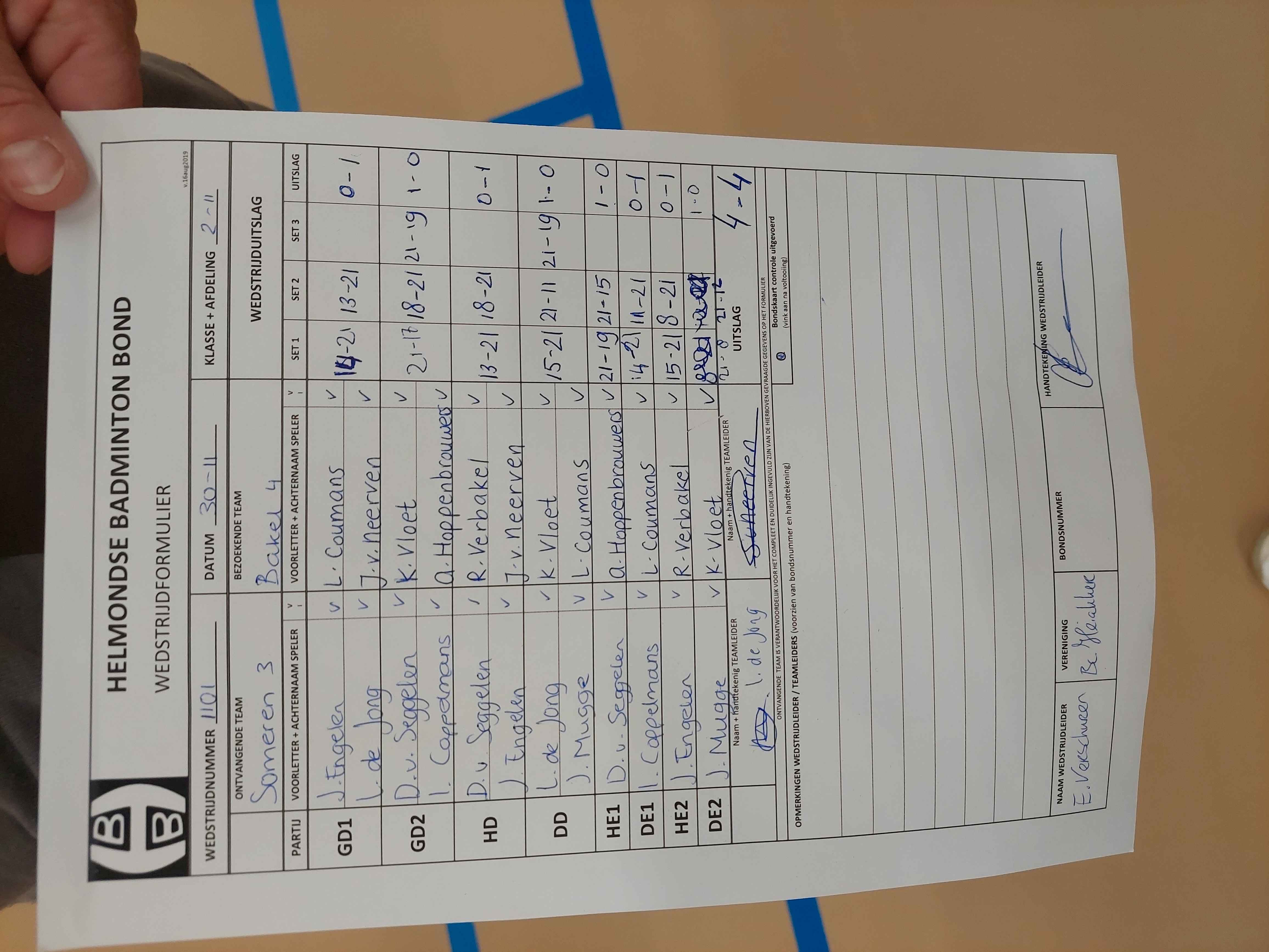 | 1101 | do. 30-11-2023 | Someren 3 | - | Bakel 4 | 3 | 4 - 4 | |||