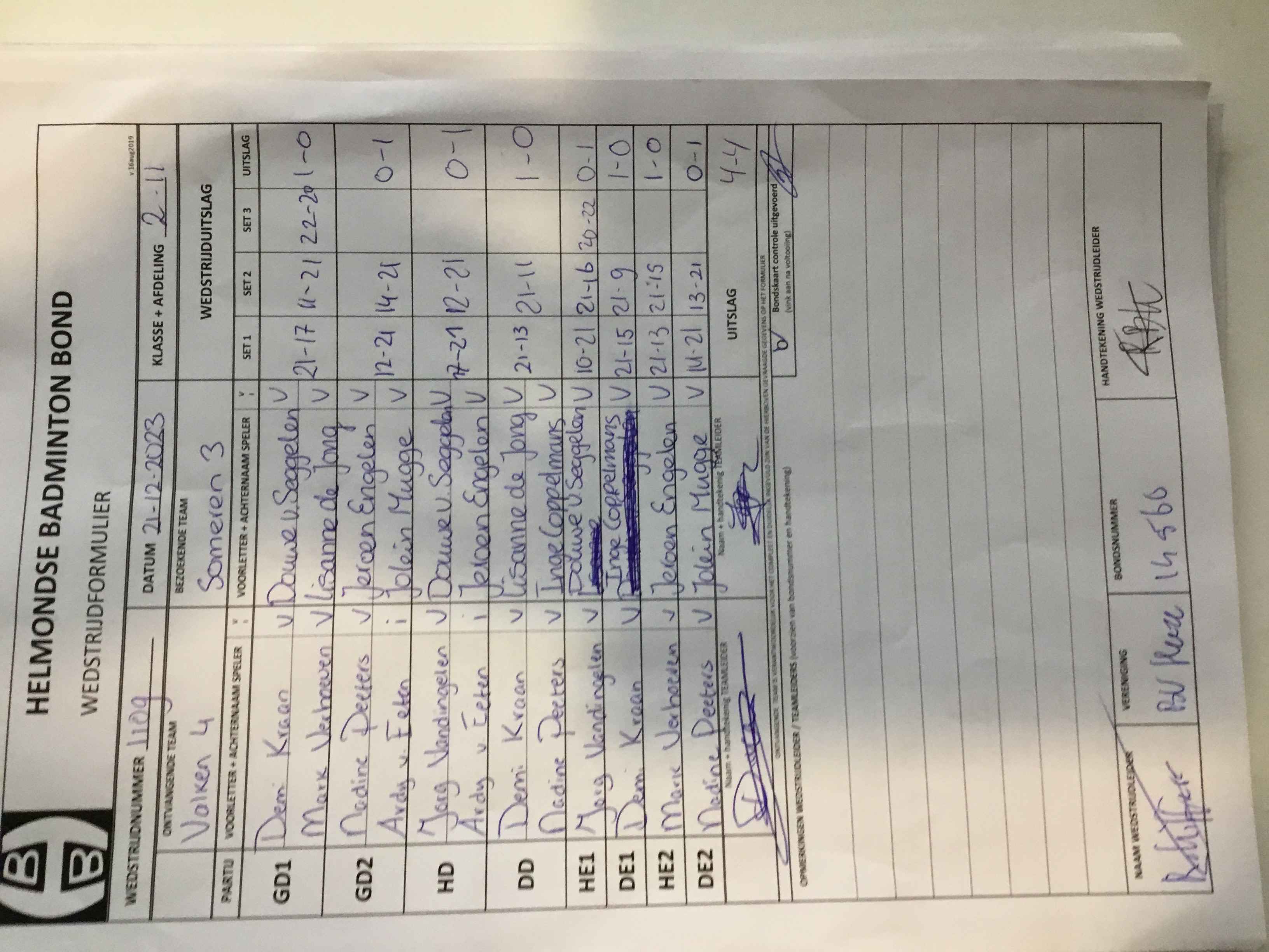| 1105 | do. 14-12-2023 | Mixed 4 | - | Someren 3 | 3 | 8 - 0 | |||
