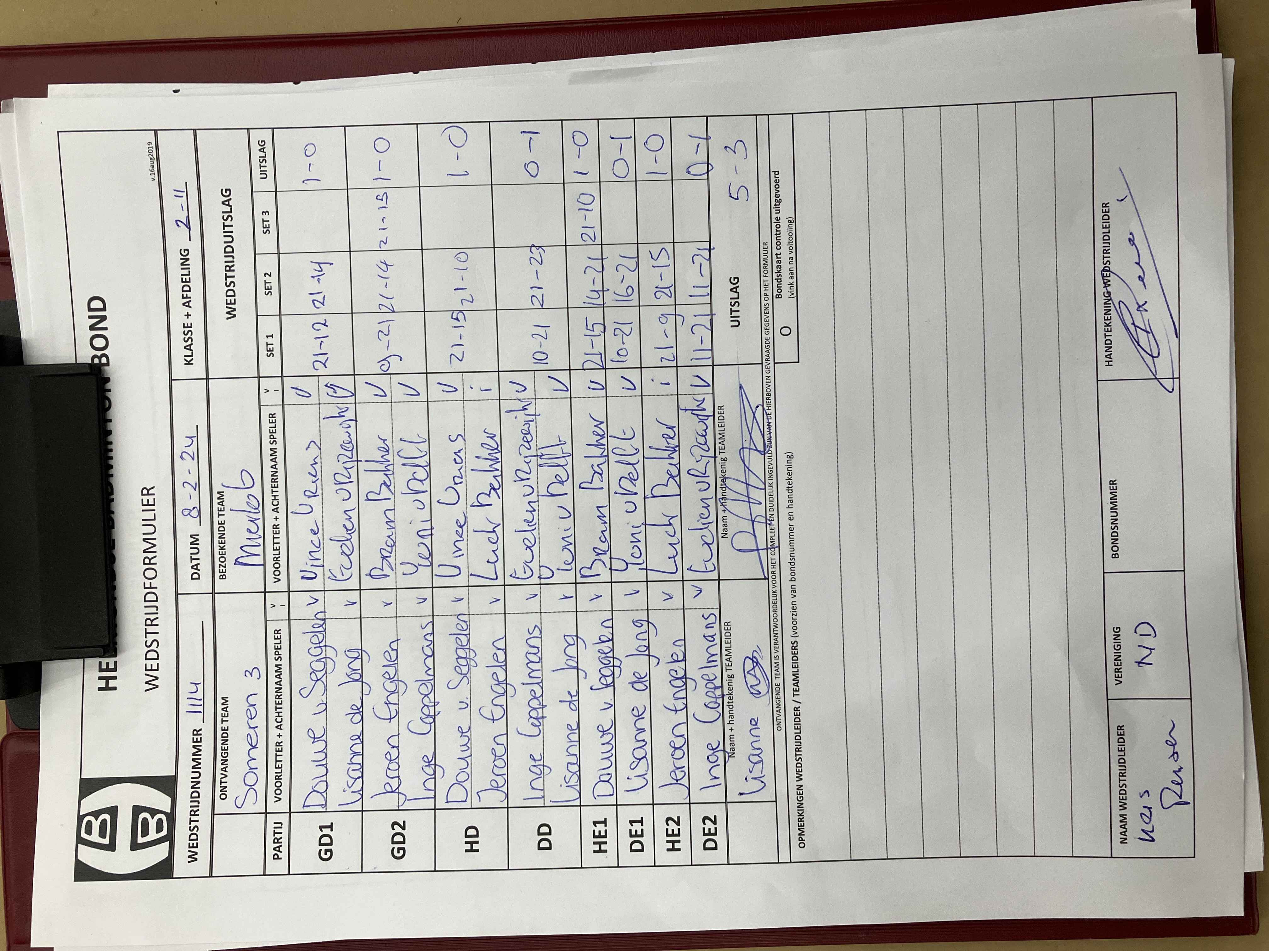 | 1114 | do. 08-02-2024 | Someren 3 | - | Mierlo 6 | 11 | 5 - 3 | |||