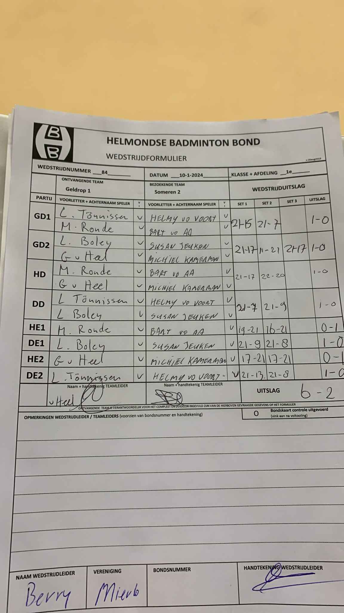 | 84 | wo. 10-01-2024 | Geldrop 1 | - | Someren 2 | 3 | 6 - 2 | |||