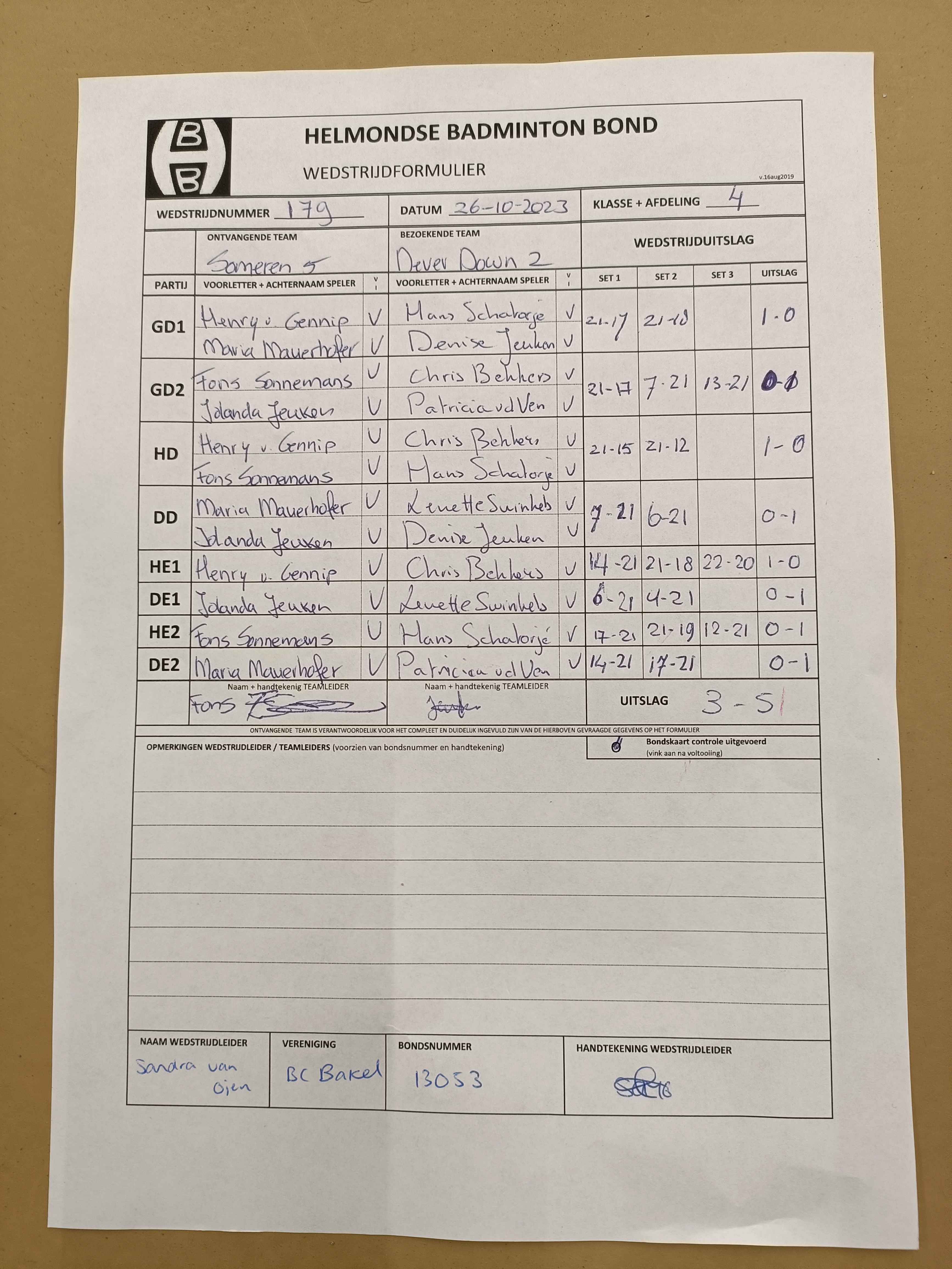| 179 | do. 26-10-2023 | Someren 5 | - | Never Down 2 | 11 | 3 - 5 | |||