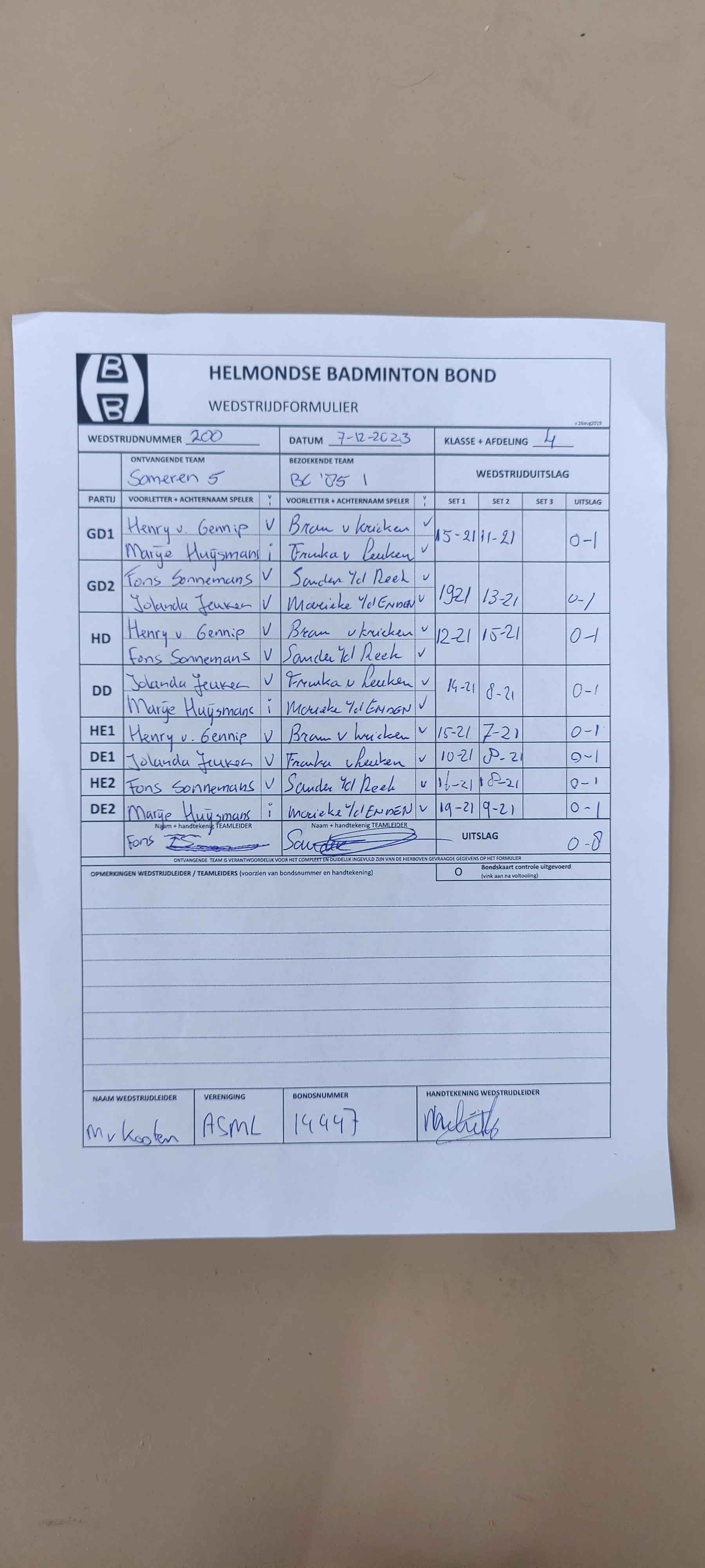 | 200 | do. 07-12-2023 | Someren 5 | - | BC '85 1 | 14 | 0 - 8 | |||