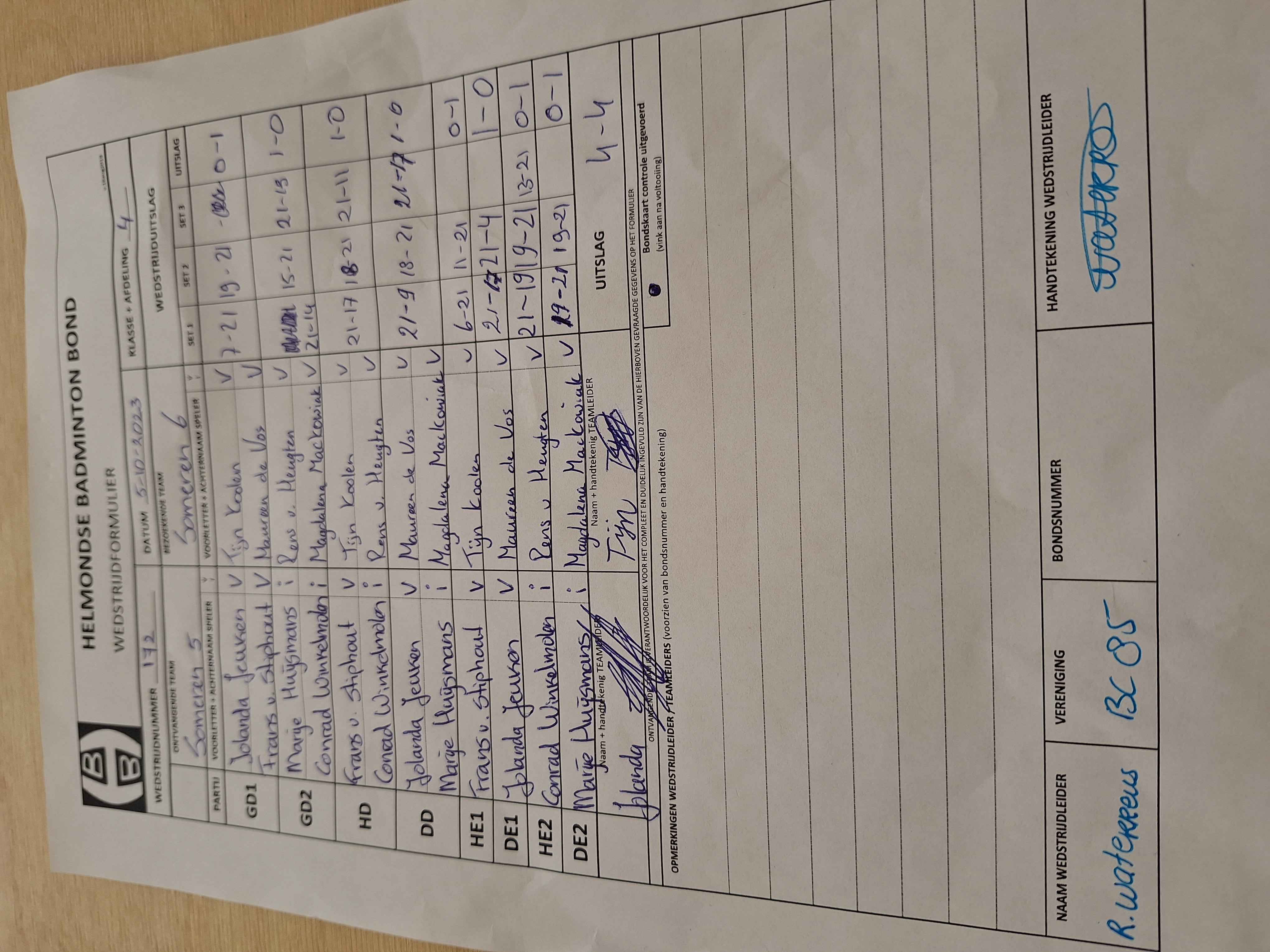 | 172 | do. 05-10-2023 | Someren 5 | - | Someren 6 | 3 | 4 - 4 | |||