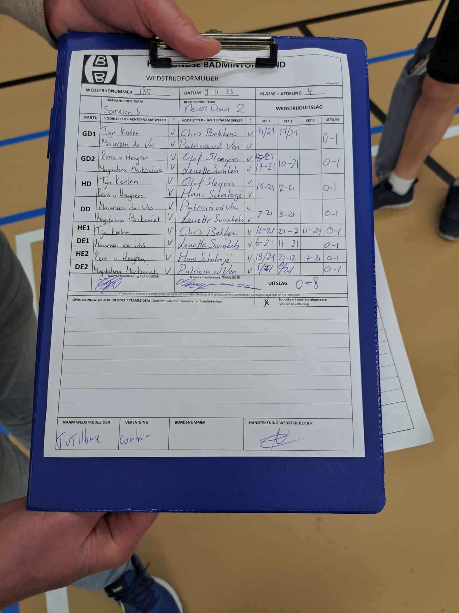 | 185 | do. 09-11-2023 | Someren 6 | - | Never Down 2 | 11 | 0 - 8 | |||