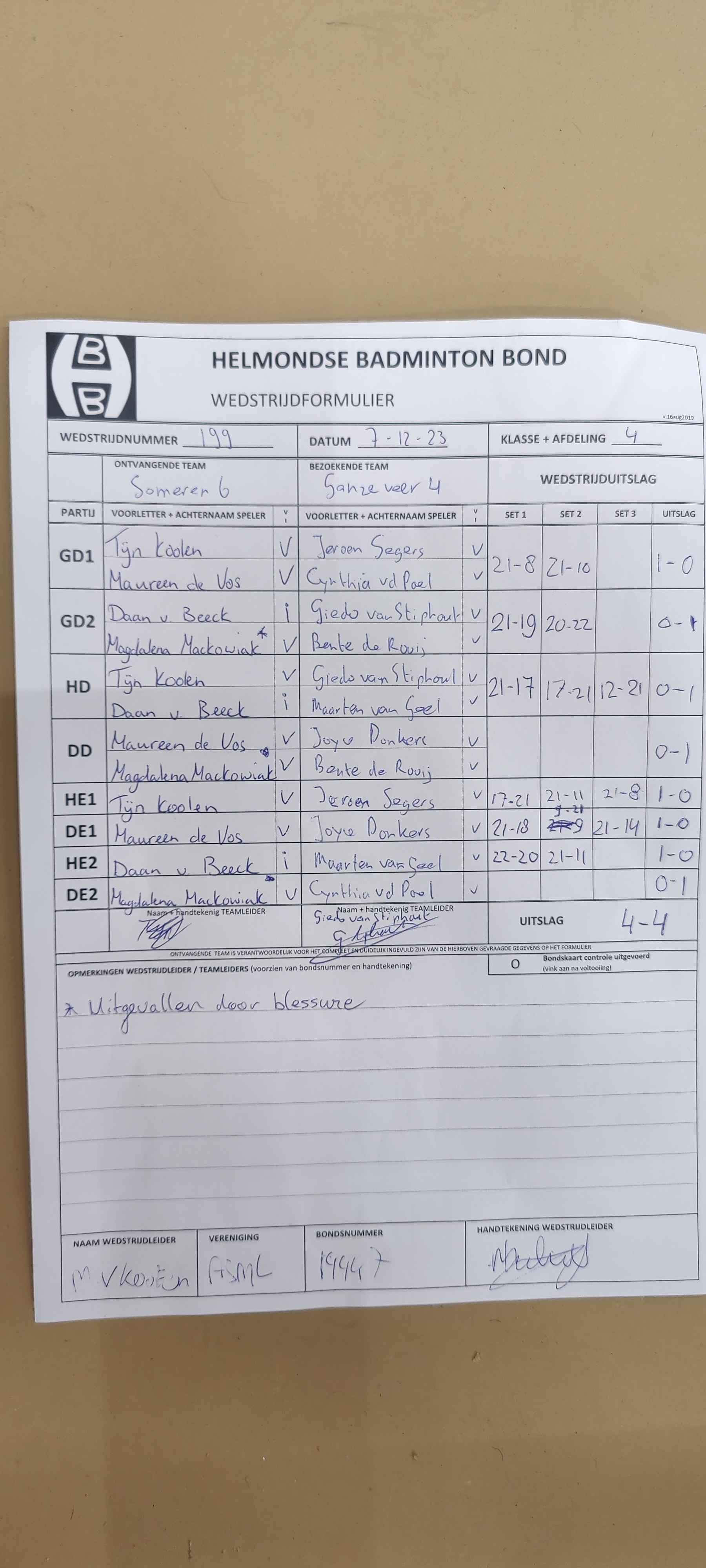 | 199 | do. 07-12-2023 | Someren 6 | - | Ganzeveer 4 | 13 | 4 - 4 | |||