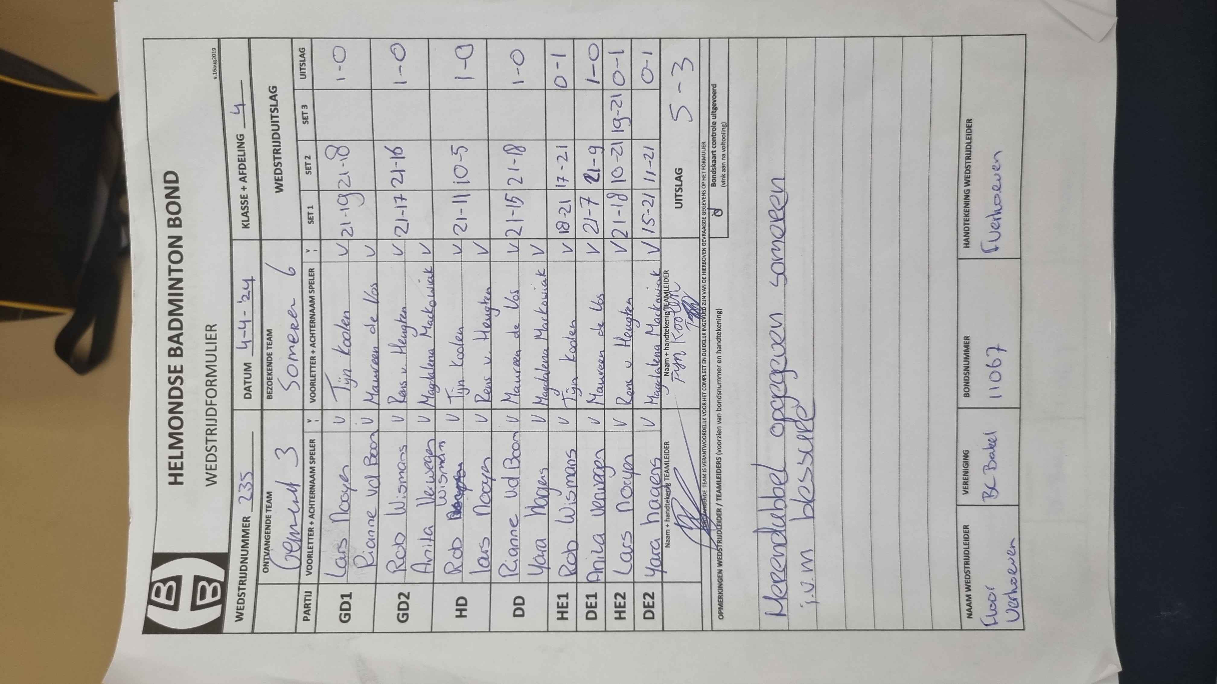 | 245 | do. 23-05-2024 | Bakel 5 | - | Someren 6 | 3 | 3 - 5 |