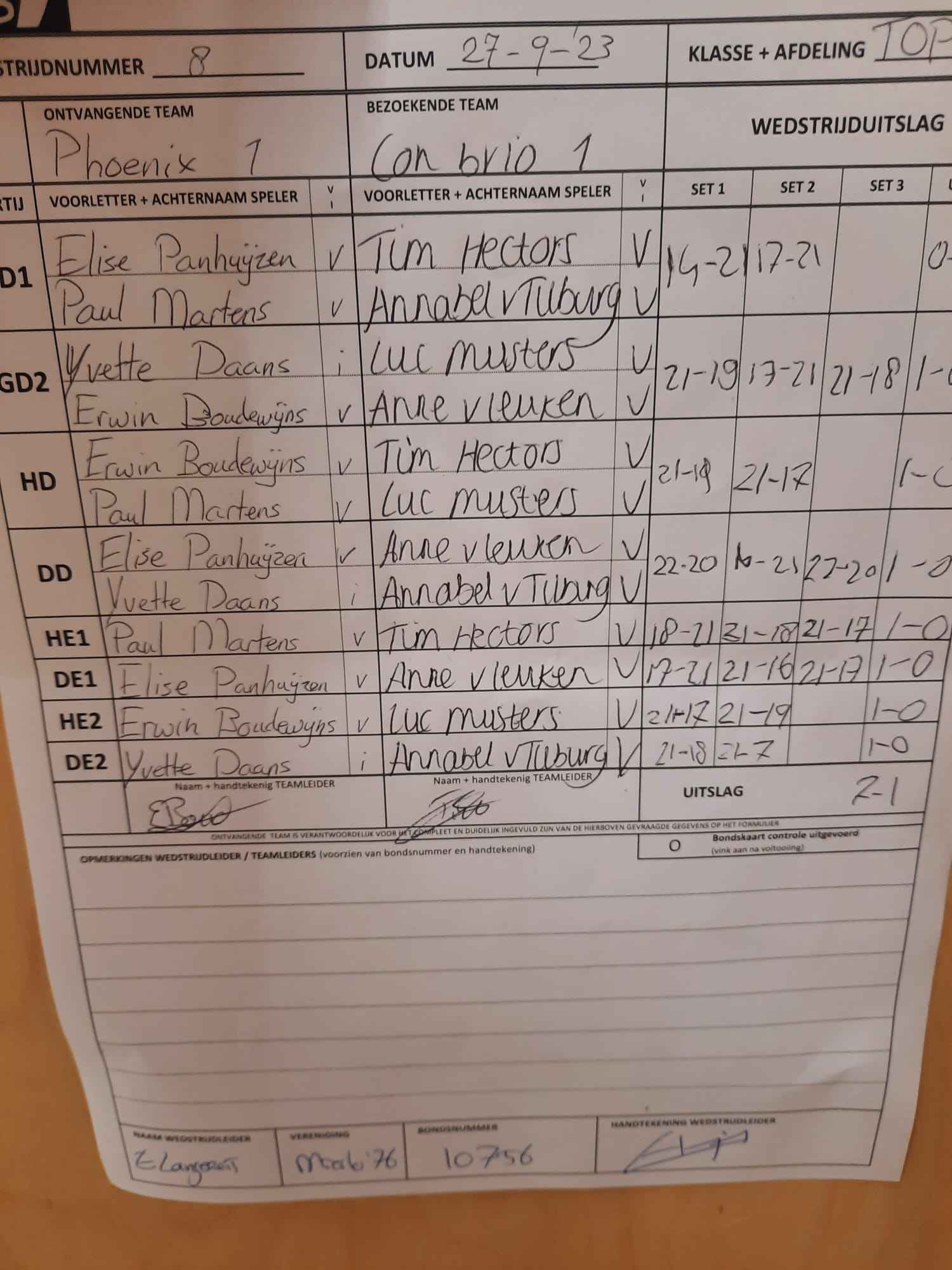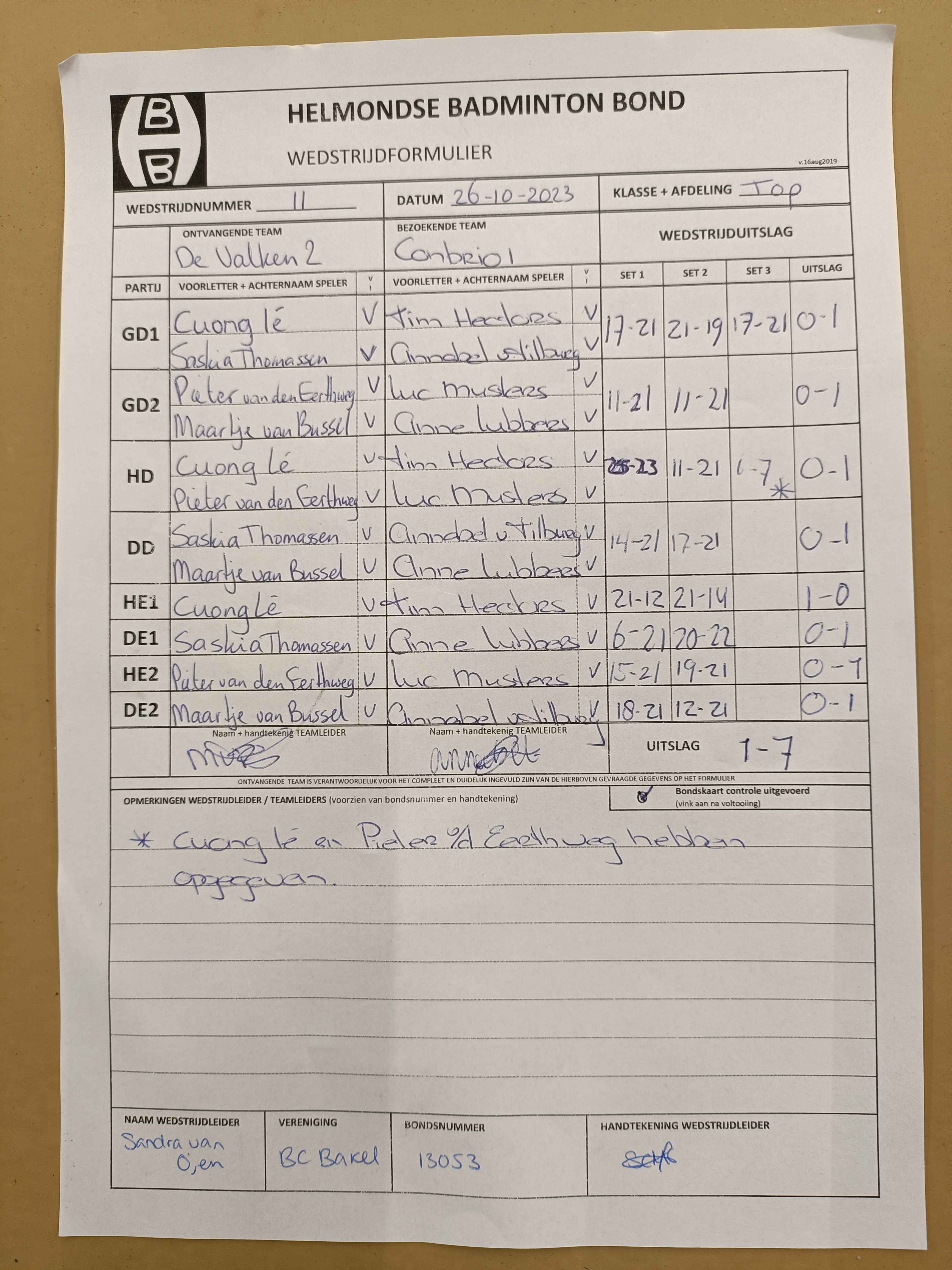| 11 | do. 26-10-2023 | De Valken 2 | - | Con Brio 1 | 3 | 1 - 7 | |||