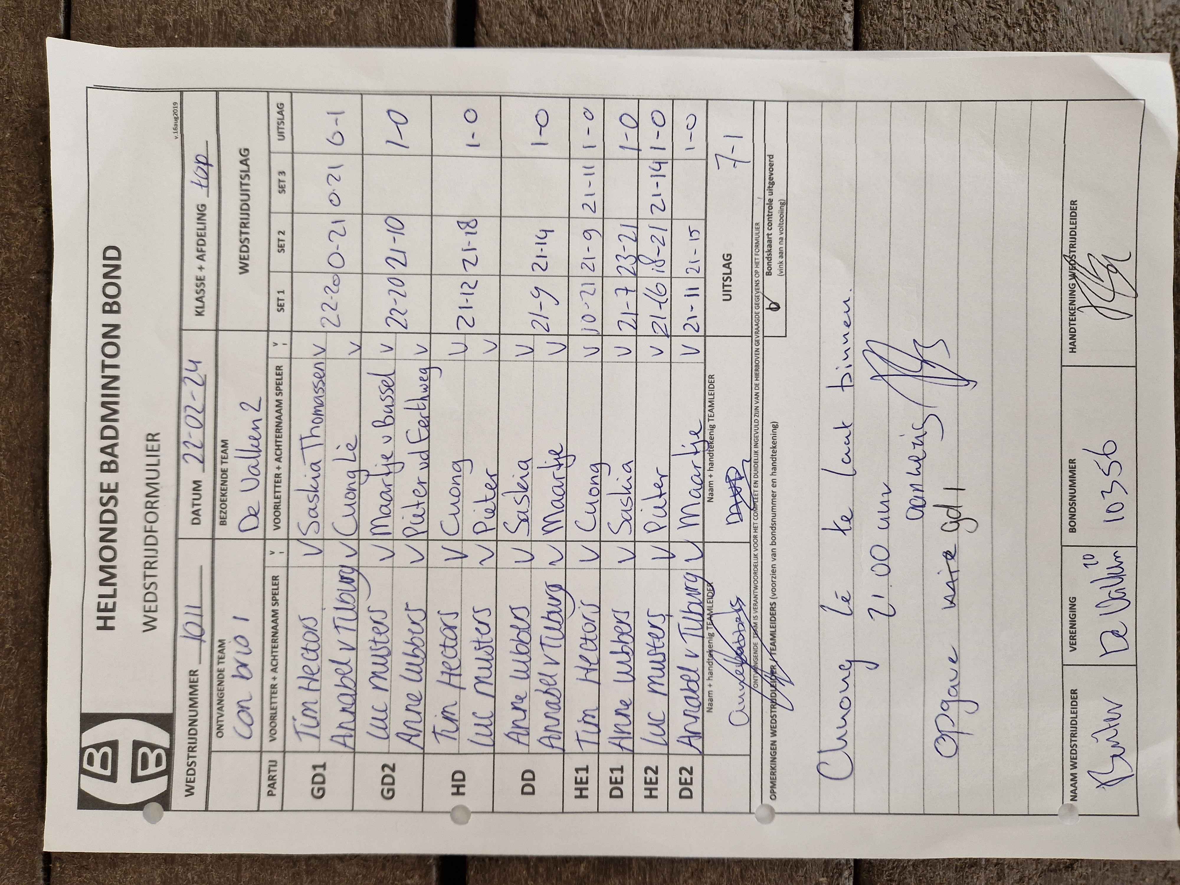 | 1011 | do. 22-02-2024 | Con Brio 1 | - | De Valken 2 | 14 | 8 - 0 | |||