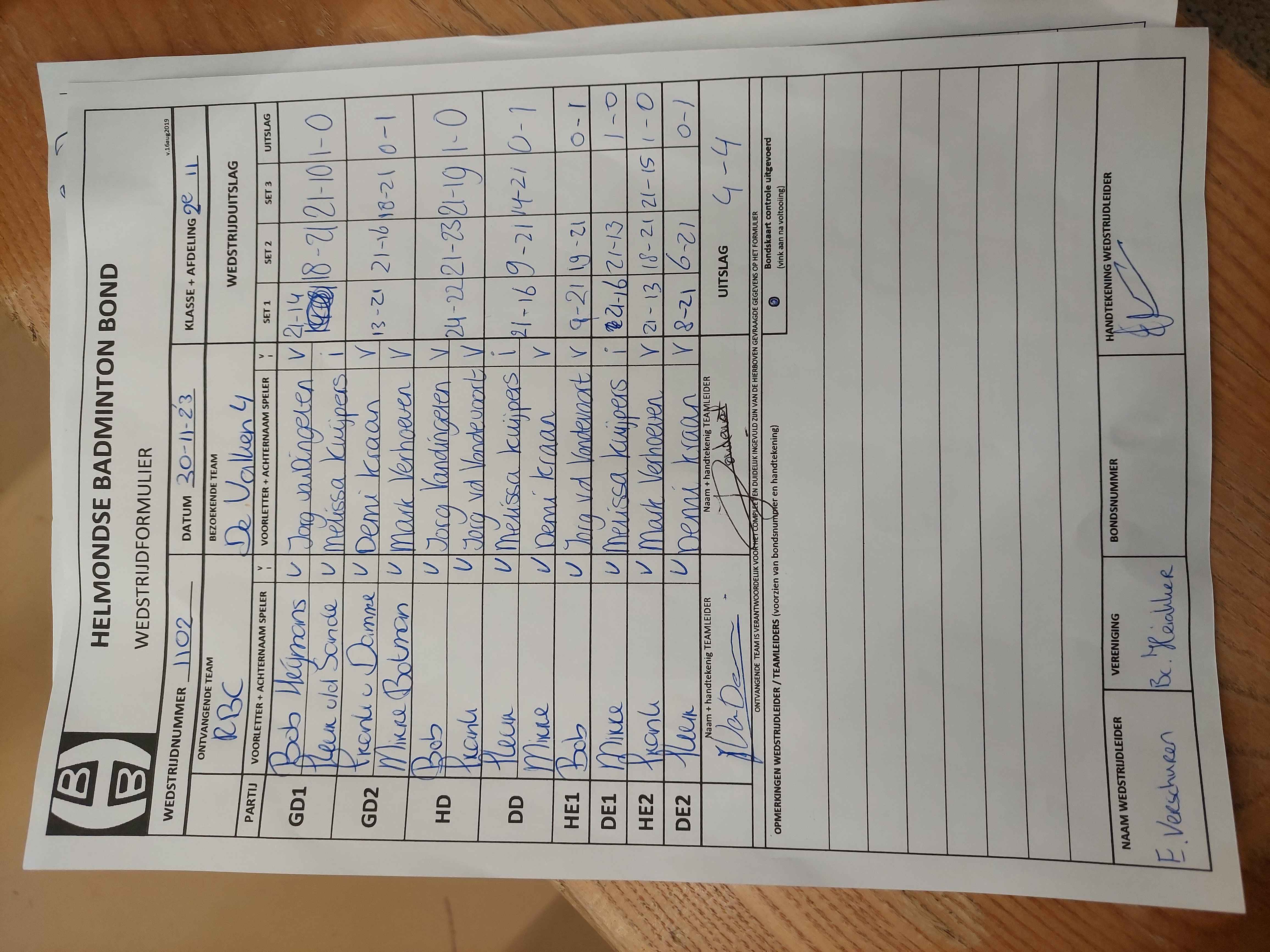 | 1102 | do. 30-11-2023 | RBC 2 | - | De Valken 4 | 4 | 4 - 4 | |||