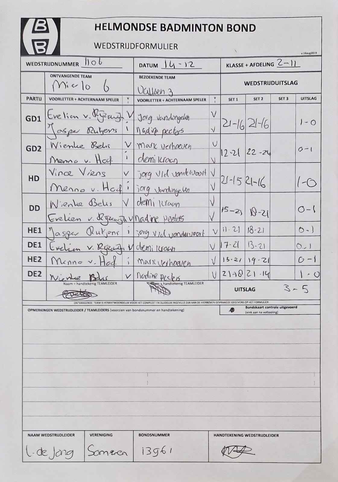 | 1106 | do. 14-12-2023 | Mierlo 6 | - | De Valken 4 | 4 | 3 - 5 | |||