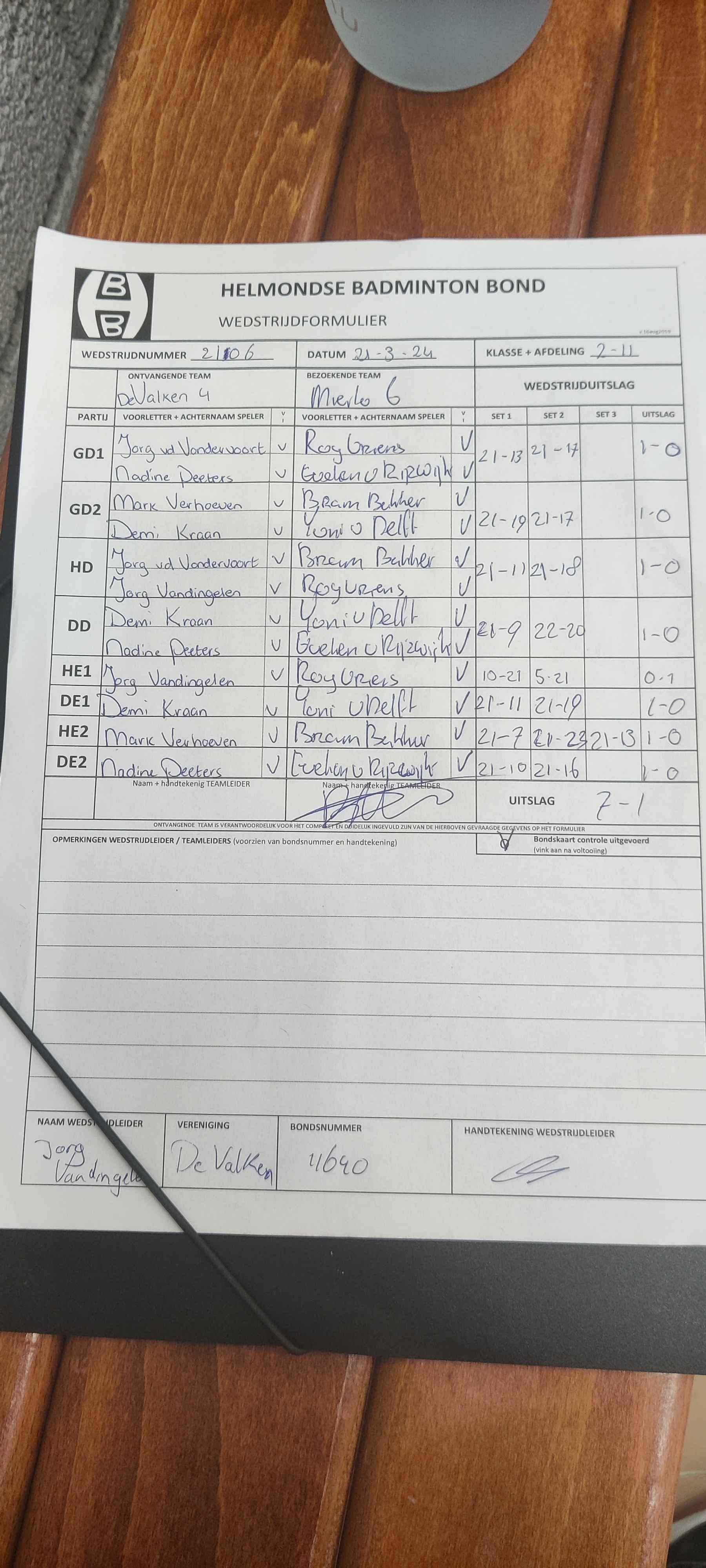 | 2106 | do. 21-03-2024 | De Valken 4 | - | Mierlo 6 | 13 | 7 - 1 | |||