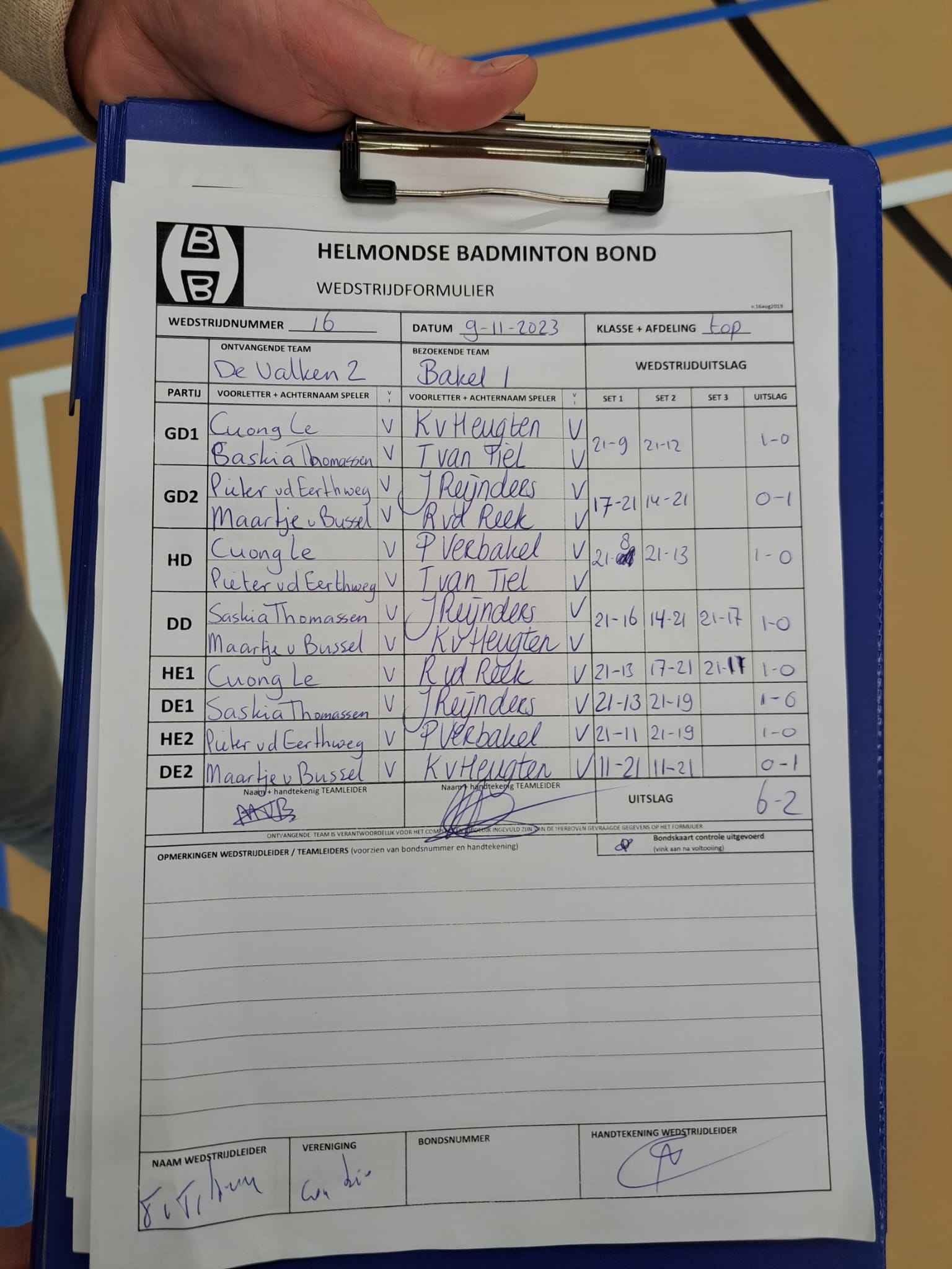 | 16 | do. 09-11-2023 | De Valken 2 | - | Bakel 1 | 3 | 6 - 2 | |||