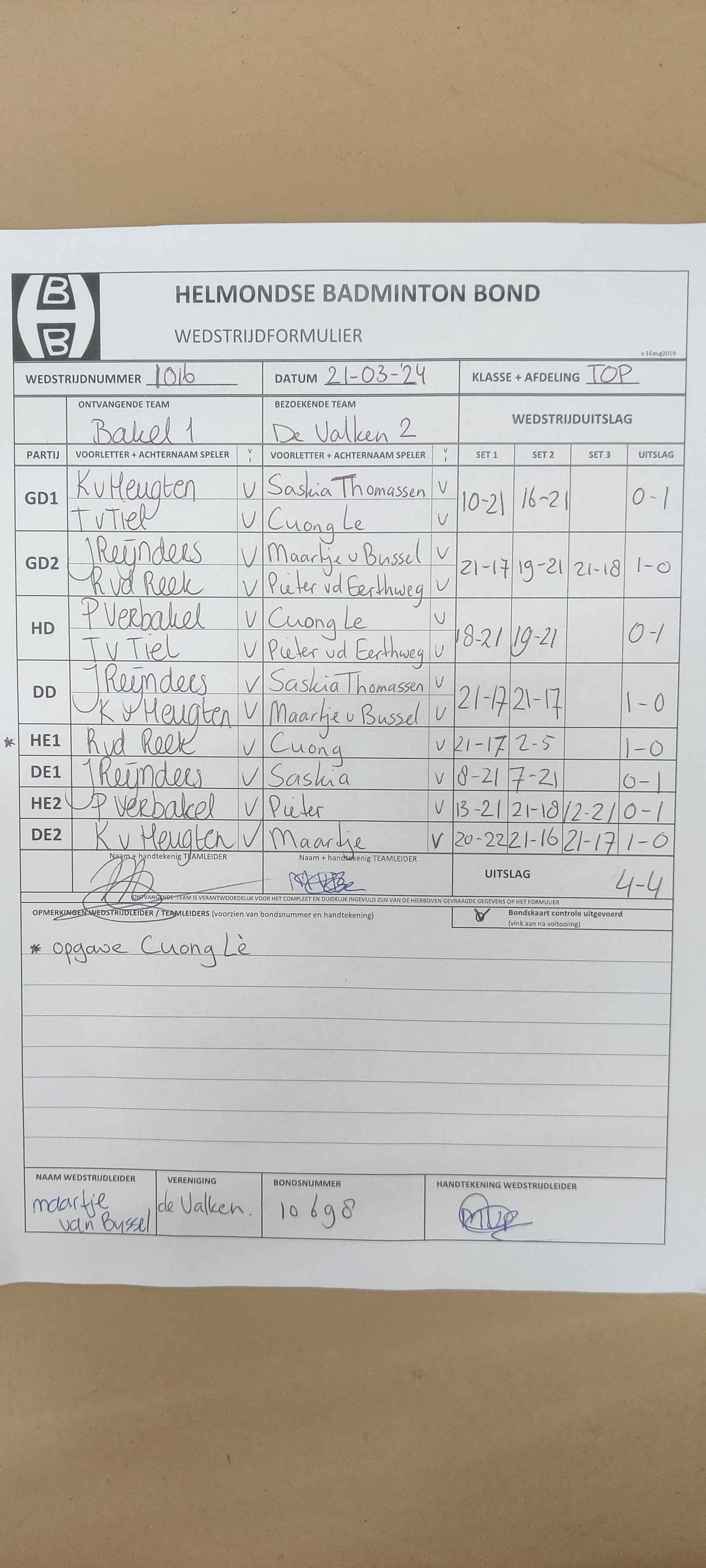 | 1016 | do. 21-03-2024 | Bakel 1 | - | De Valken 2 | 1 | 4 - 4 | |||
