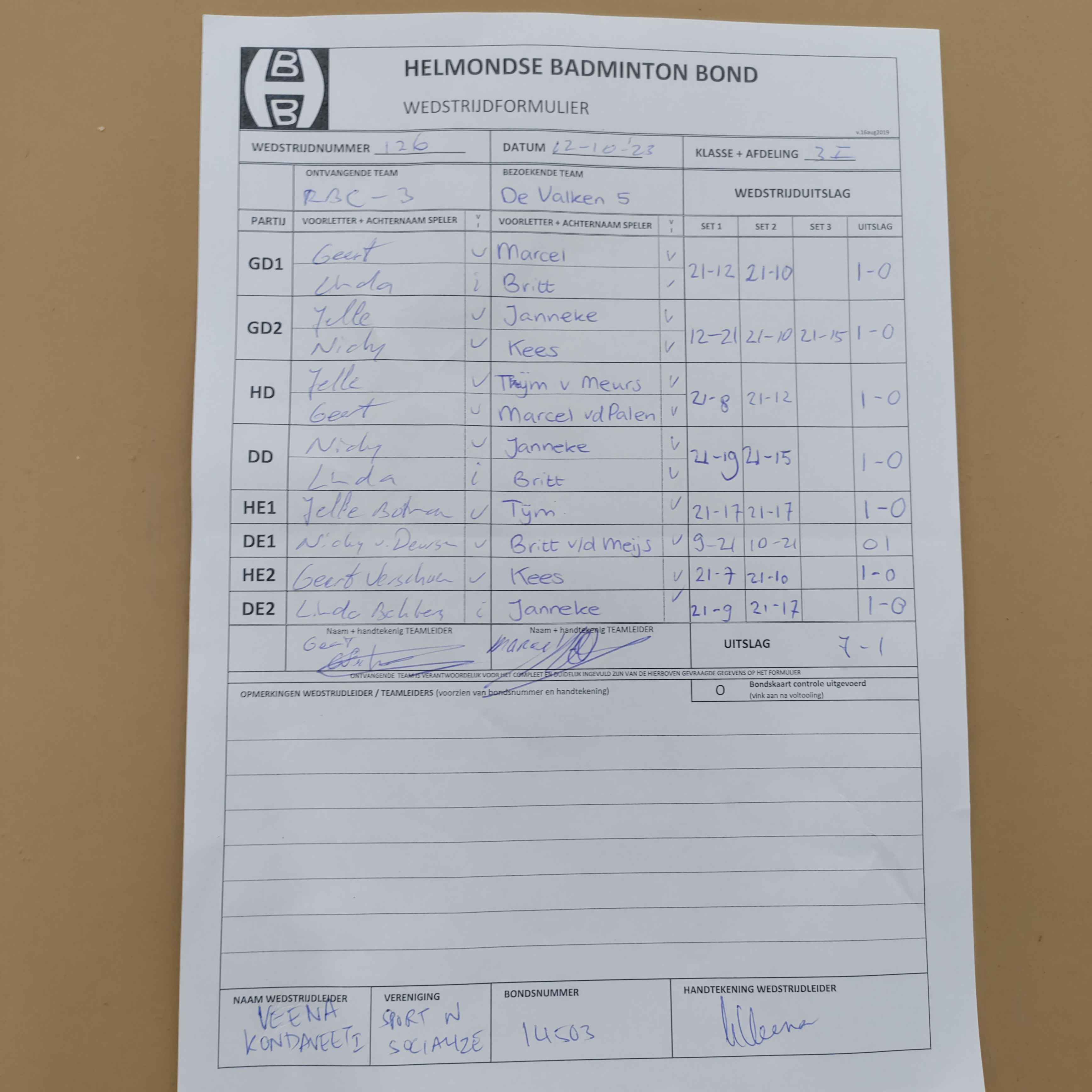 | 126 | do. 12-10-2023 | RBC 3 | - | De Valken 5 | 13 | 7 - 1 | |||