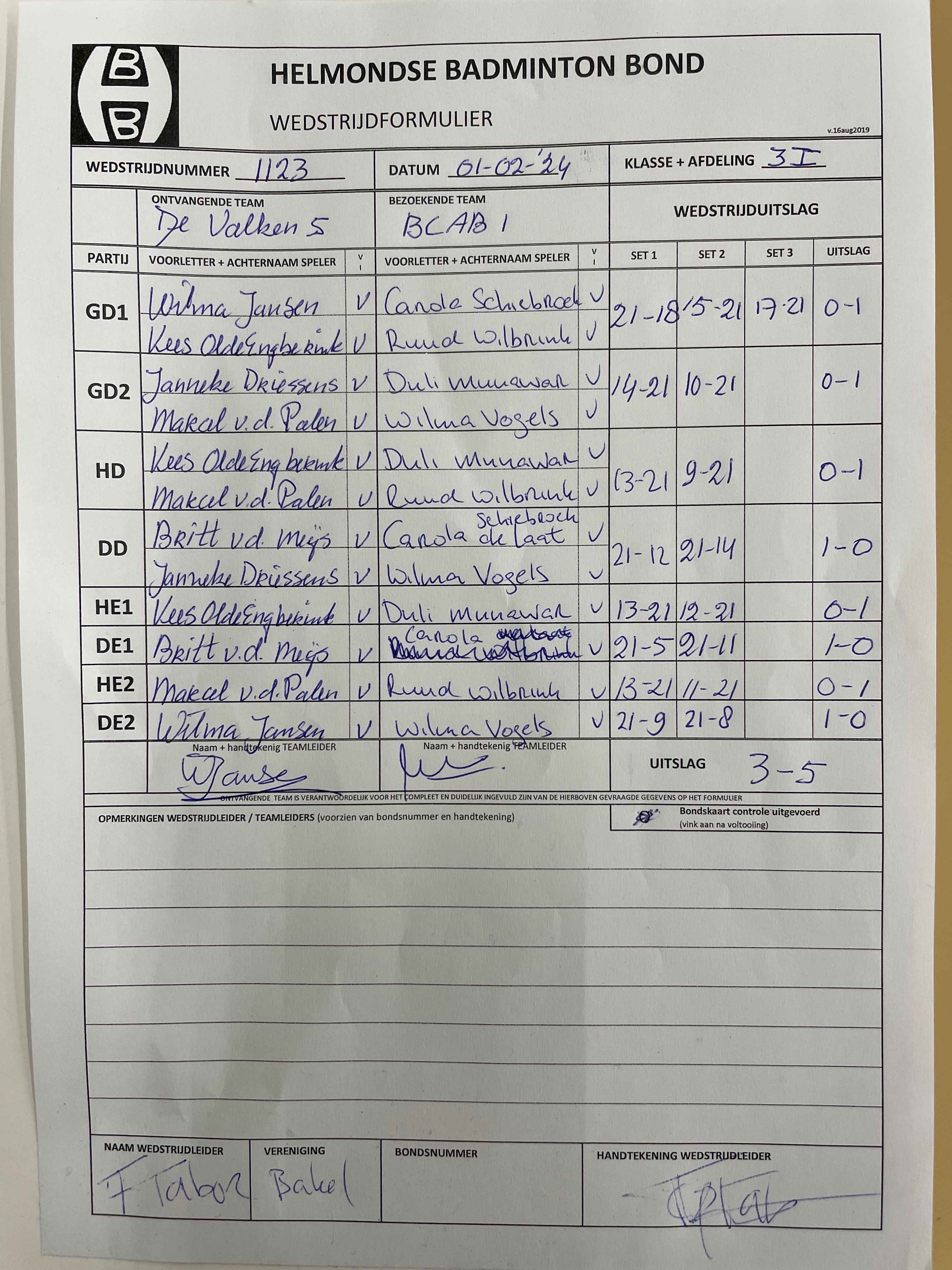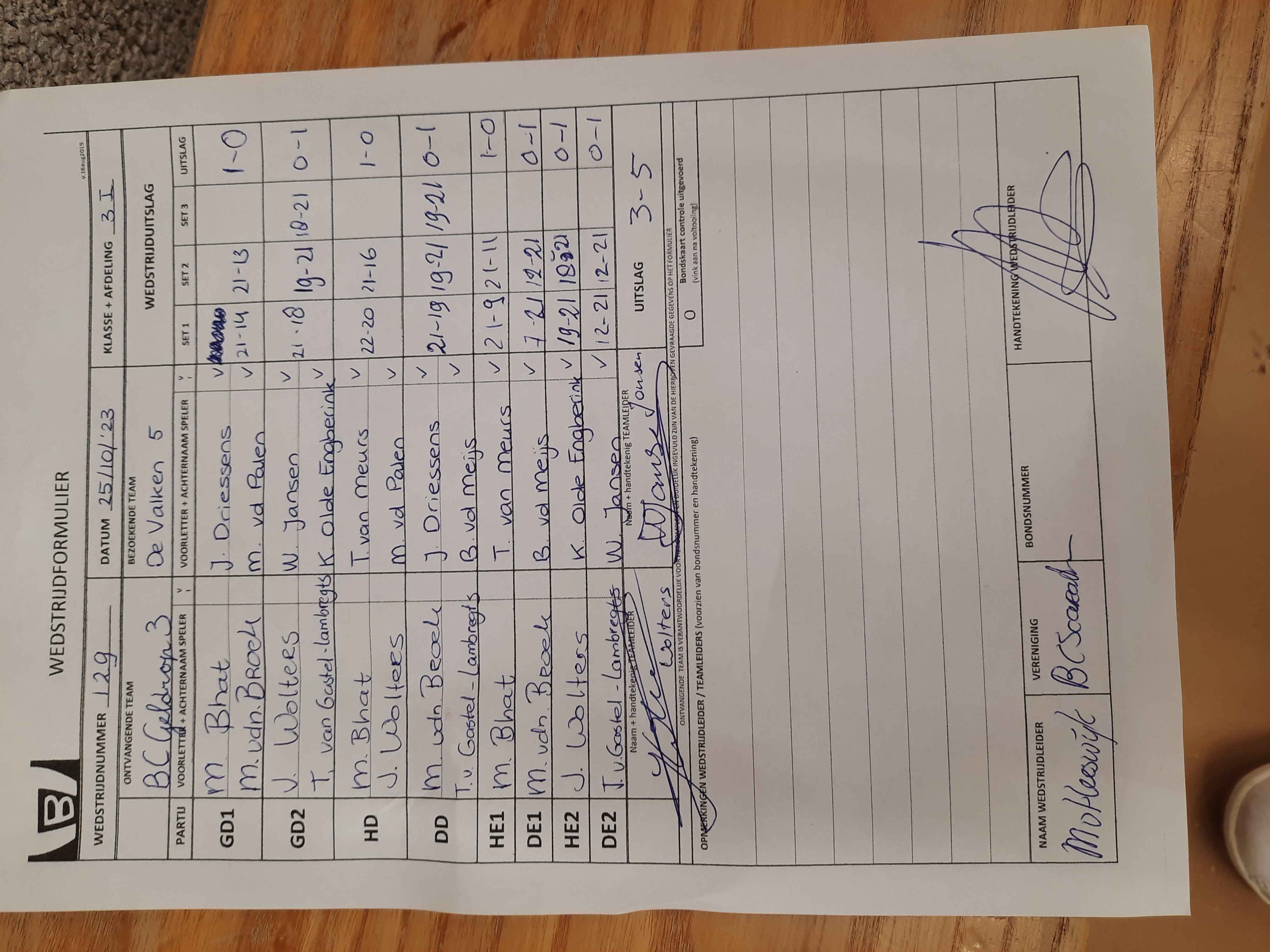 | 123 | do. 28-09-2023 | BCAB 1 | - | De Valken 5 | 4 | 6 - 2 | |||