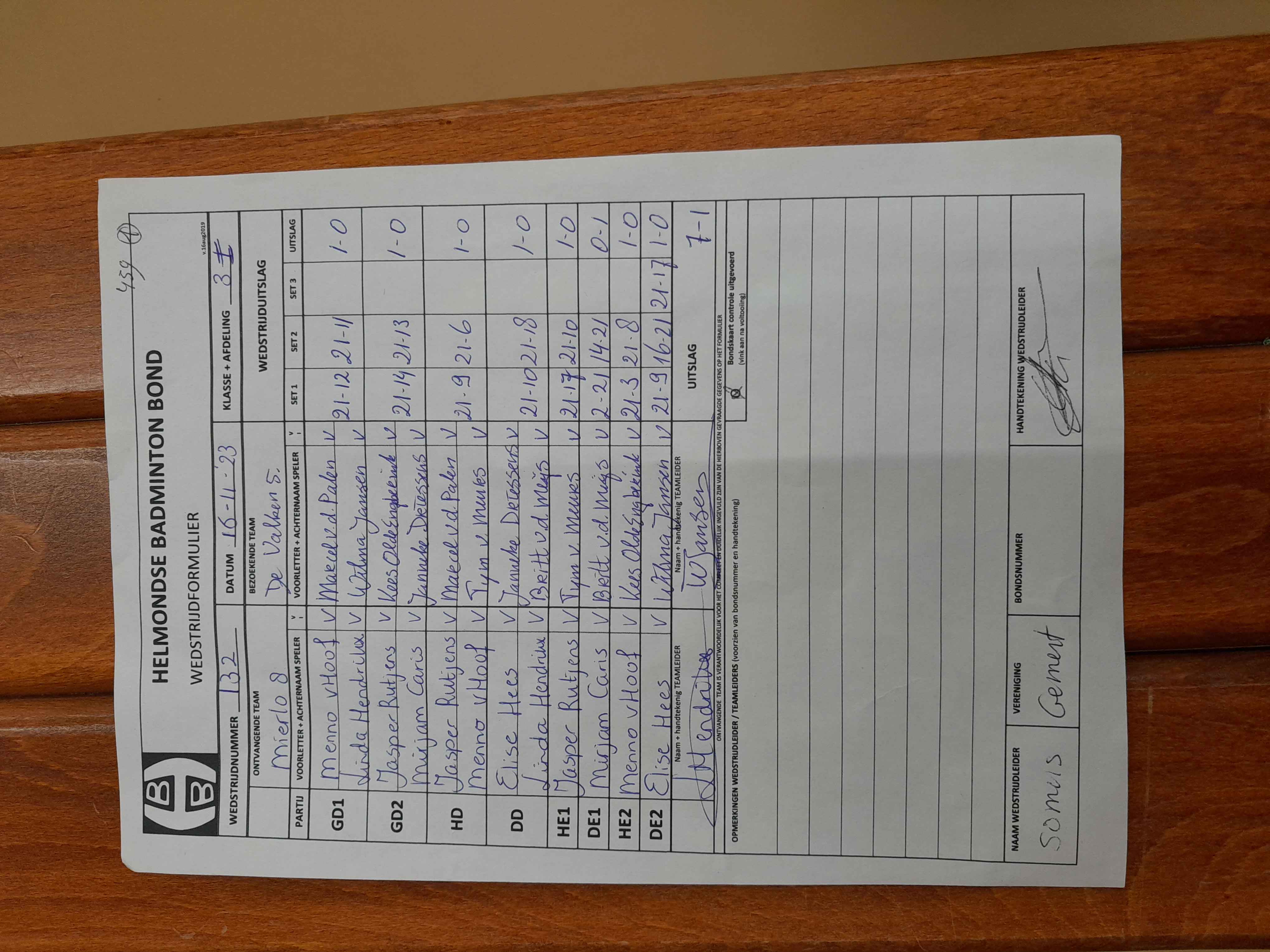 | 132 | do. 16-11-2023 | Mierlo 8 | - | De Valken 5 | 14 | 7 - 1 | |||