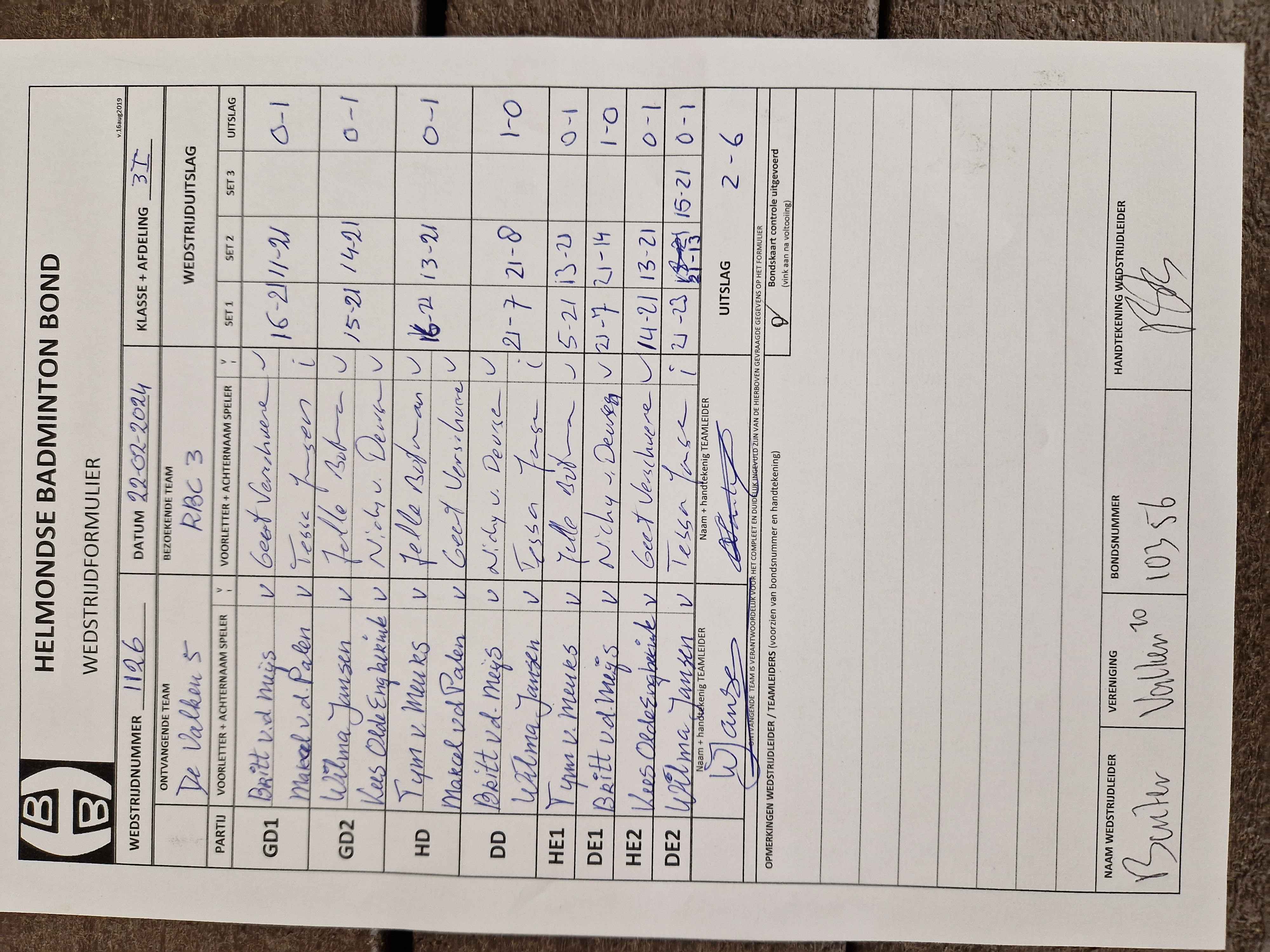 | 1126 | do. 22-02-2024 | De Valken 5 | - | RBC 3 | 5 | 2 - 6 | |||