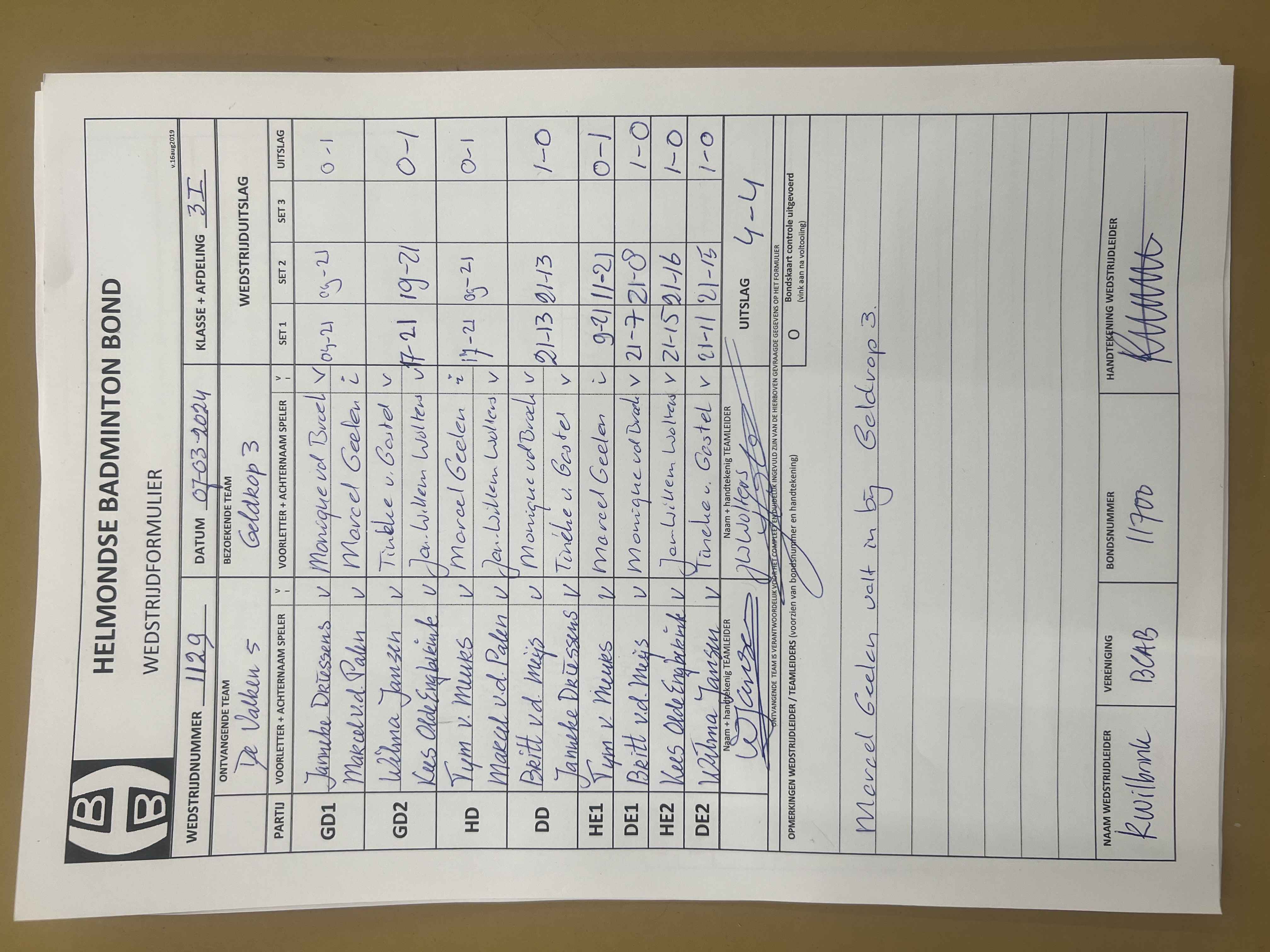 | 1129 | do. 07-03-2024 | De Valken 5 | - | Geldrop 3 | 3 | 4 - 4 | |||