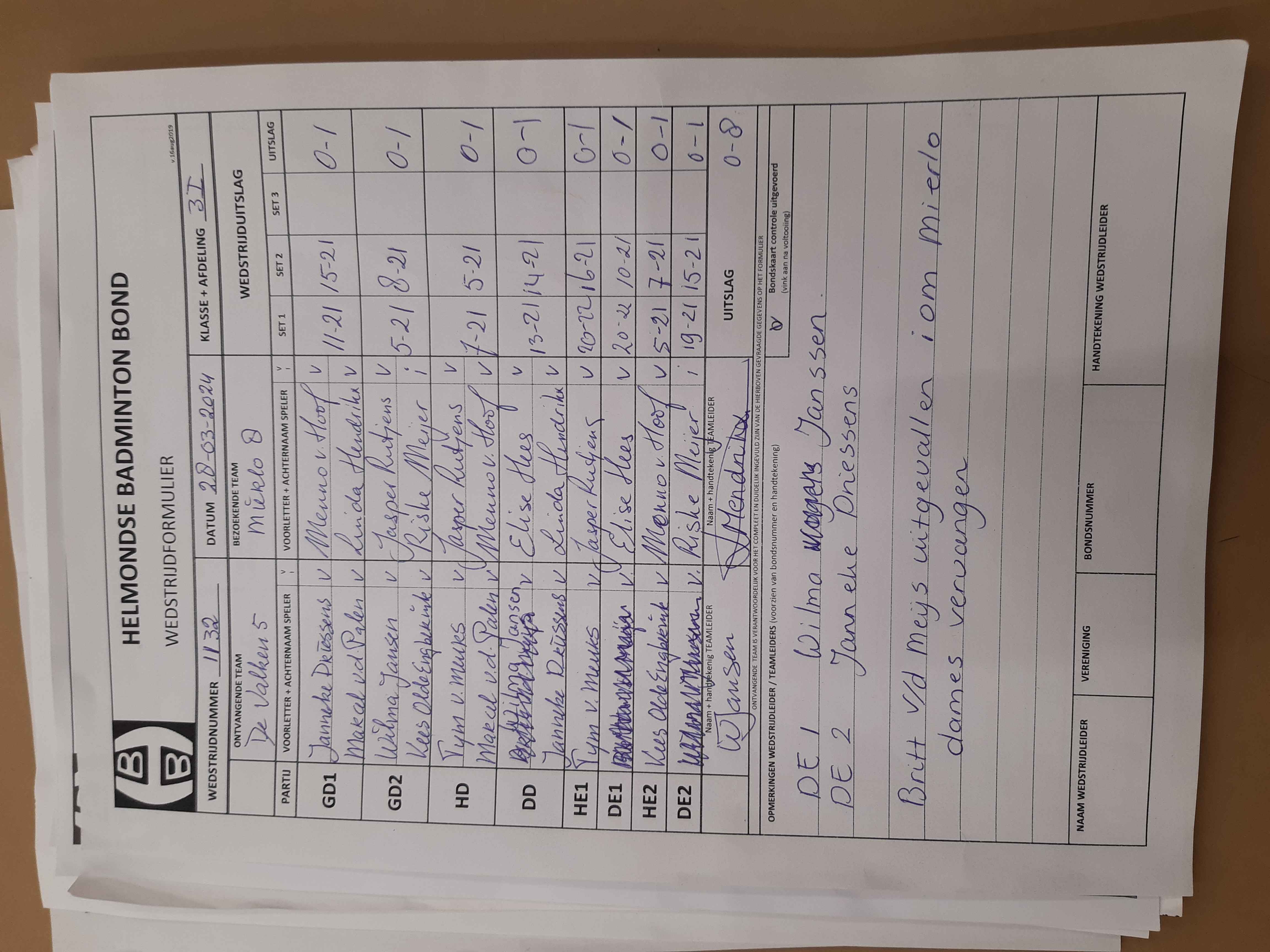 | 1132 | do. 28-03-2024 | De Valken 5 | - | Mierlo 8 | 4 | 0 - 8 | |||
