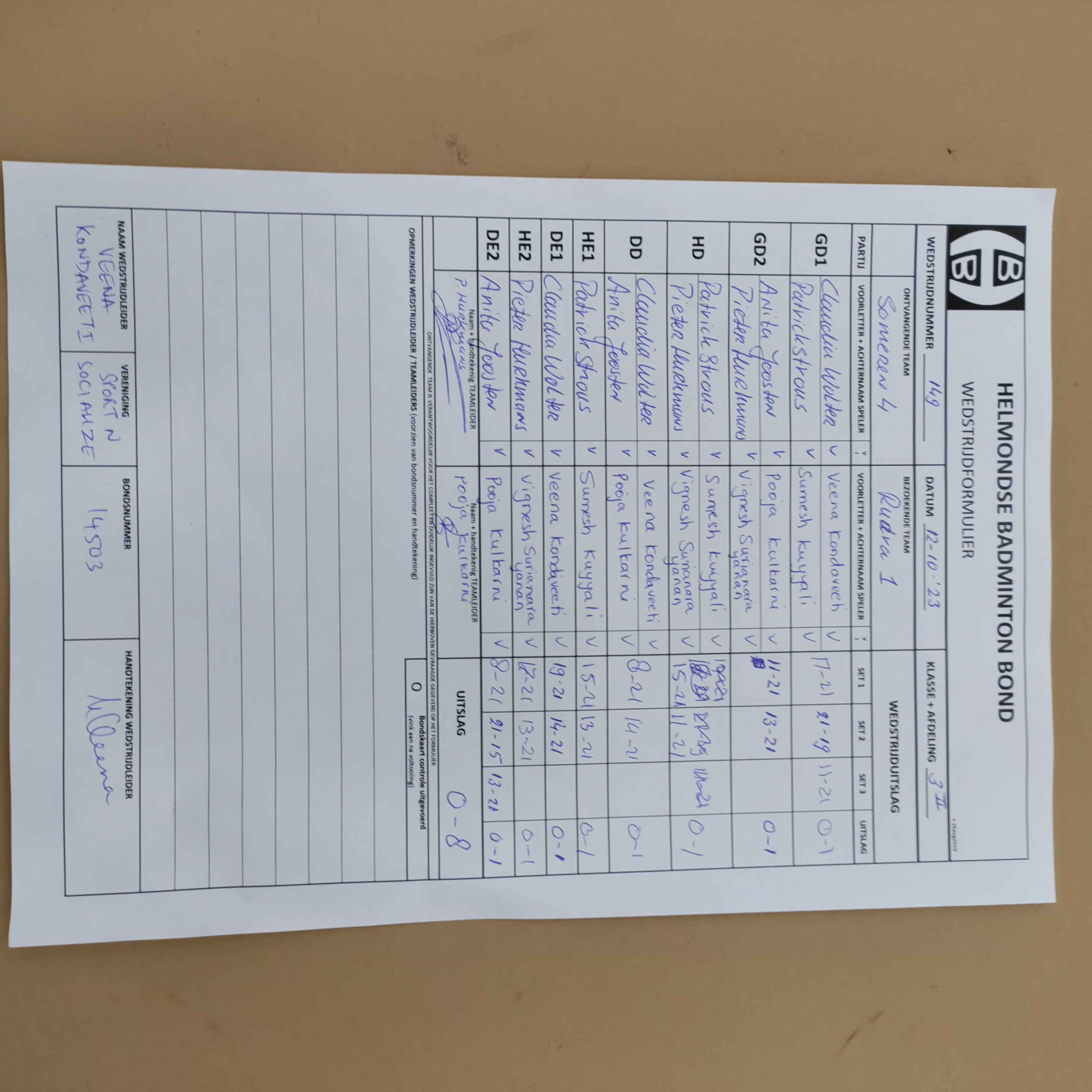 | 149 | do. 12-10-2023 | Someren 4 | - | Rudra 1 | 3 | 0 - 8 | |||