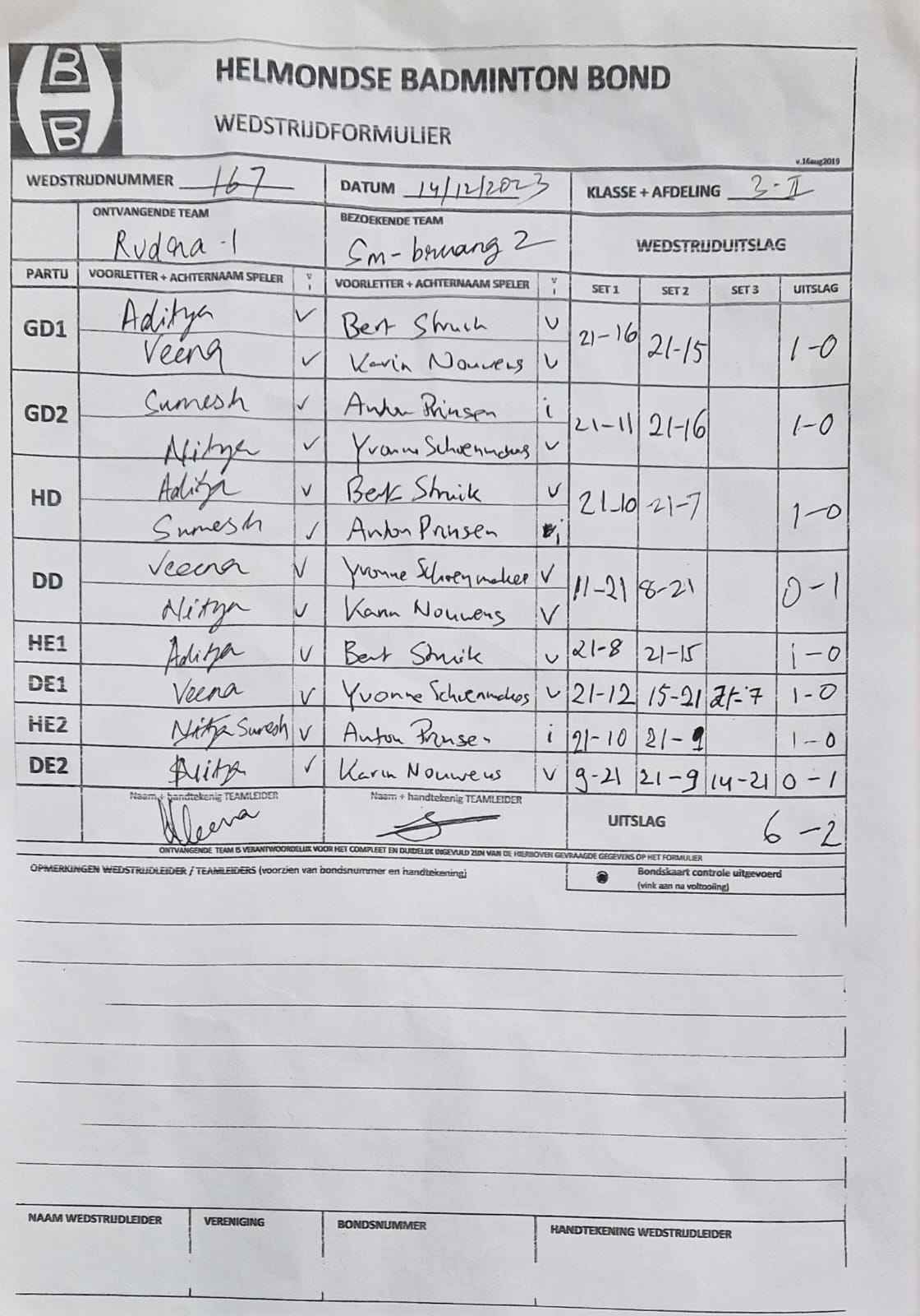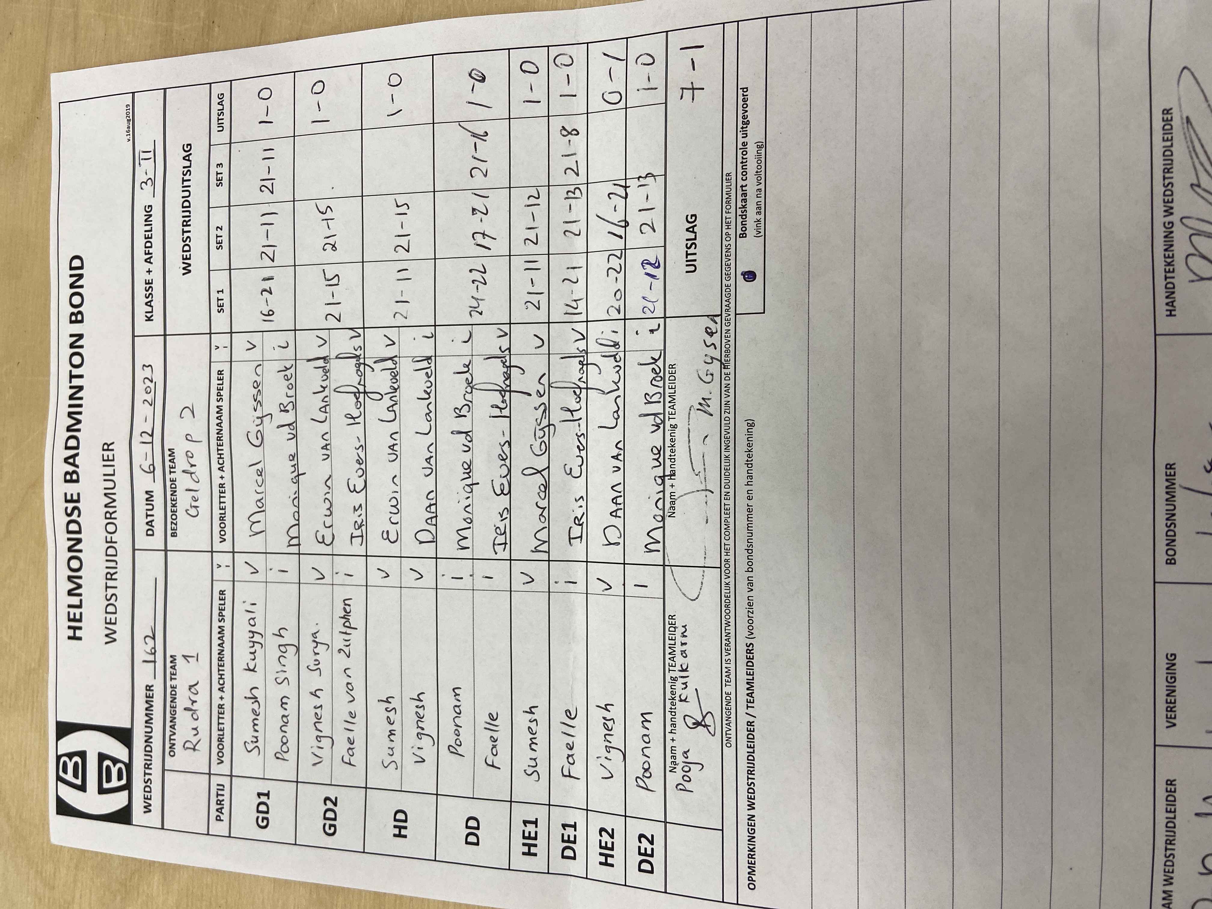 | 162 | wo. 06-12-2023 | Rudra 1 | - | Geldrop 2 | 13 | 7 - 1 | |||
