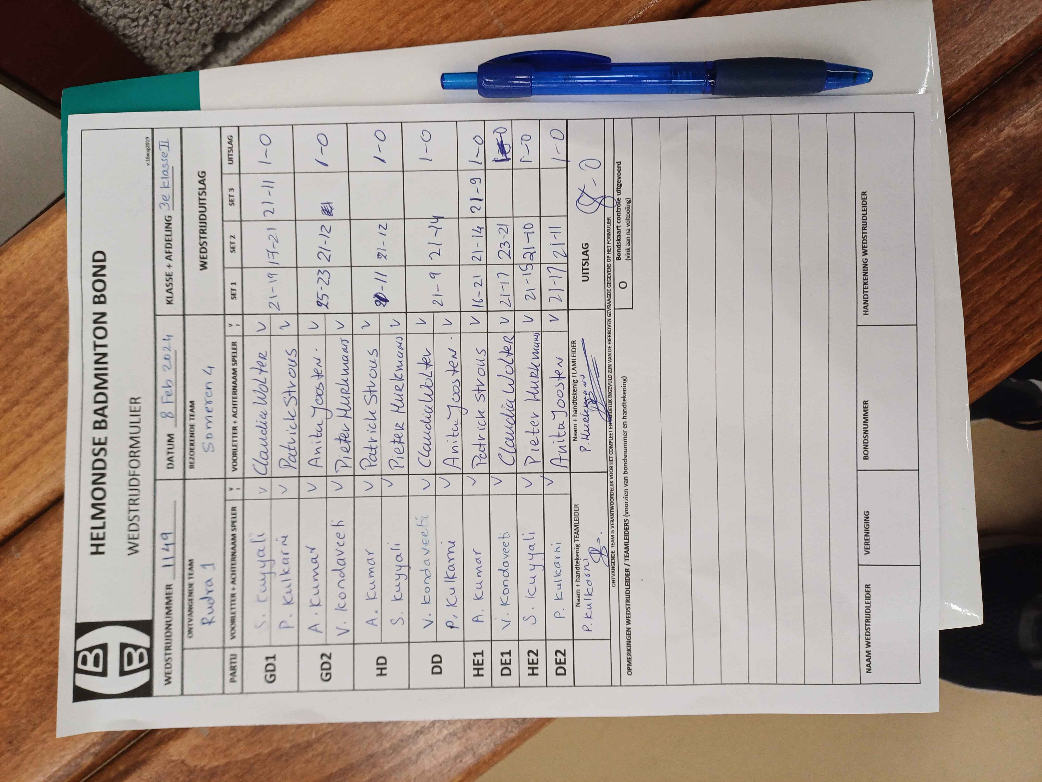 | 1149 | do. 08-02-2024 | Rudra 1 | - | Someren 4 | 14 | 8 - 0 | |||