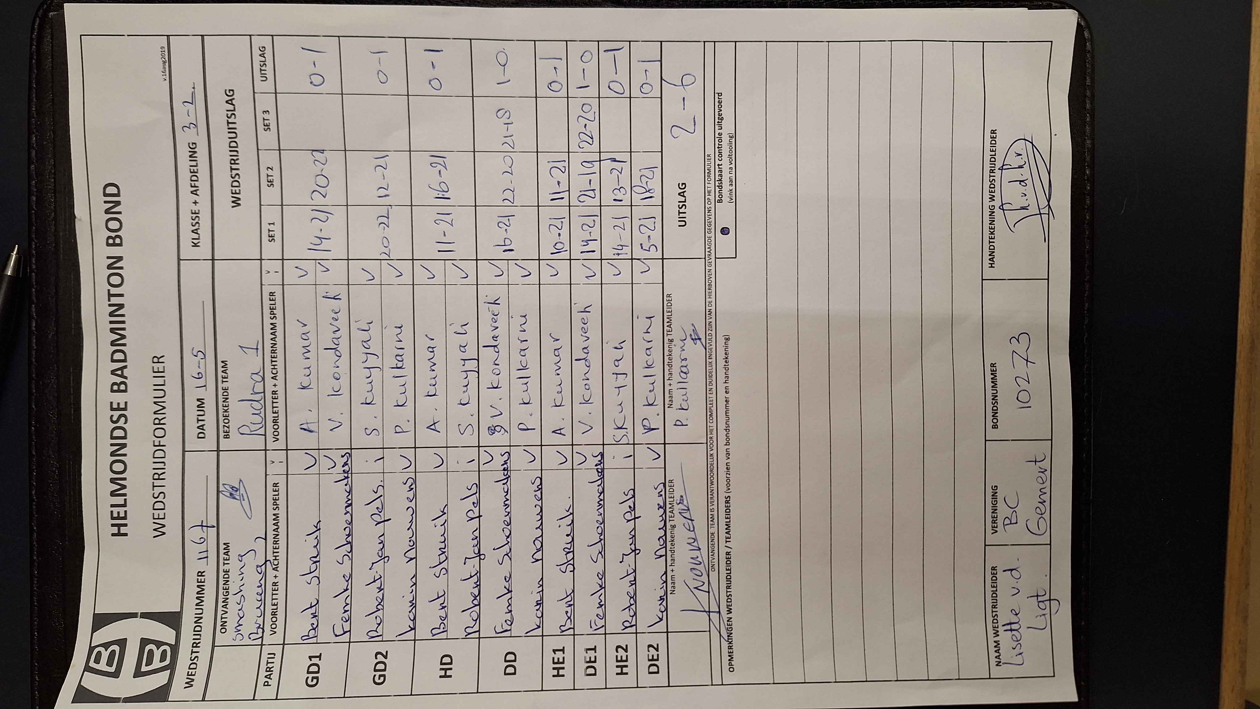 | 1152 | wo. 20-03-2024 | Rudra 1 | - | Gemert 1 | 1 | 5 - 3 | |||