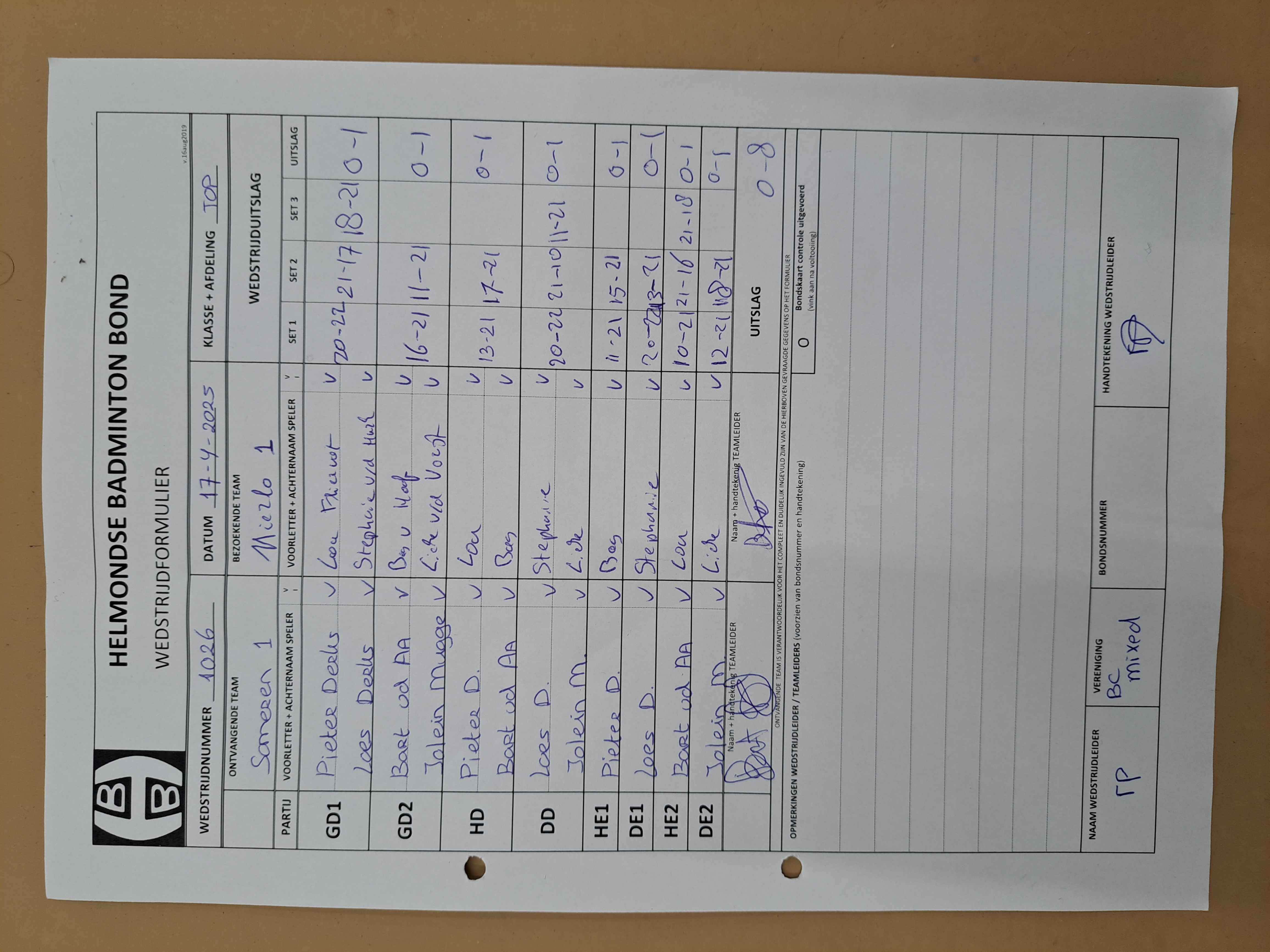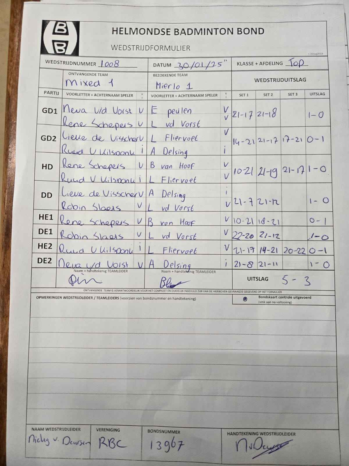 | 1008 | do. 30-01-2025 | Mixed 1 | - | Mierlo 1 | 1 | 5 - 3 | |||