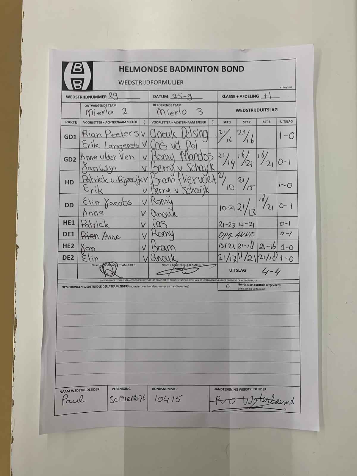 | 1057 | wo. 21-05-2025 | Mixed 2 | - | Mierlo 2 | 1 | 6 - 2 | |||