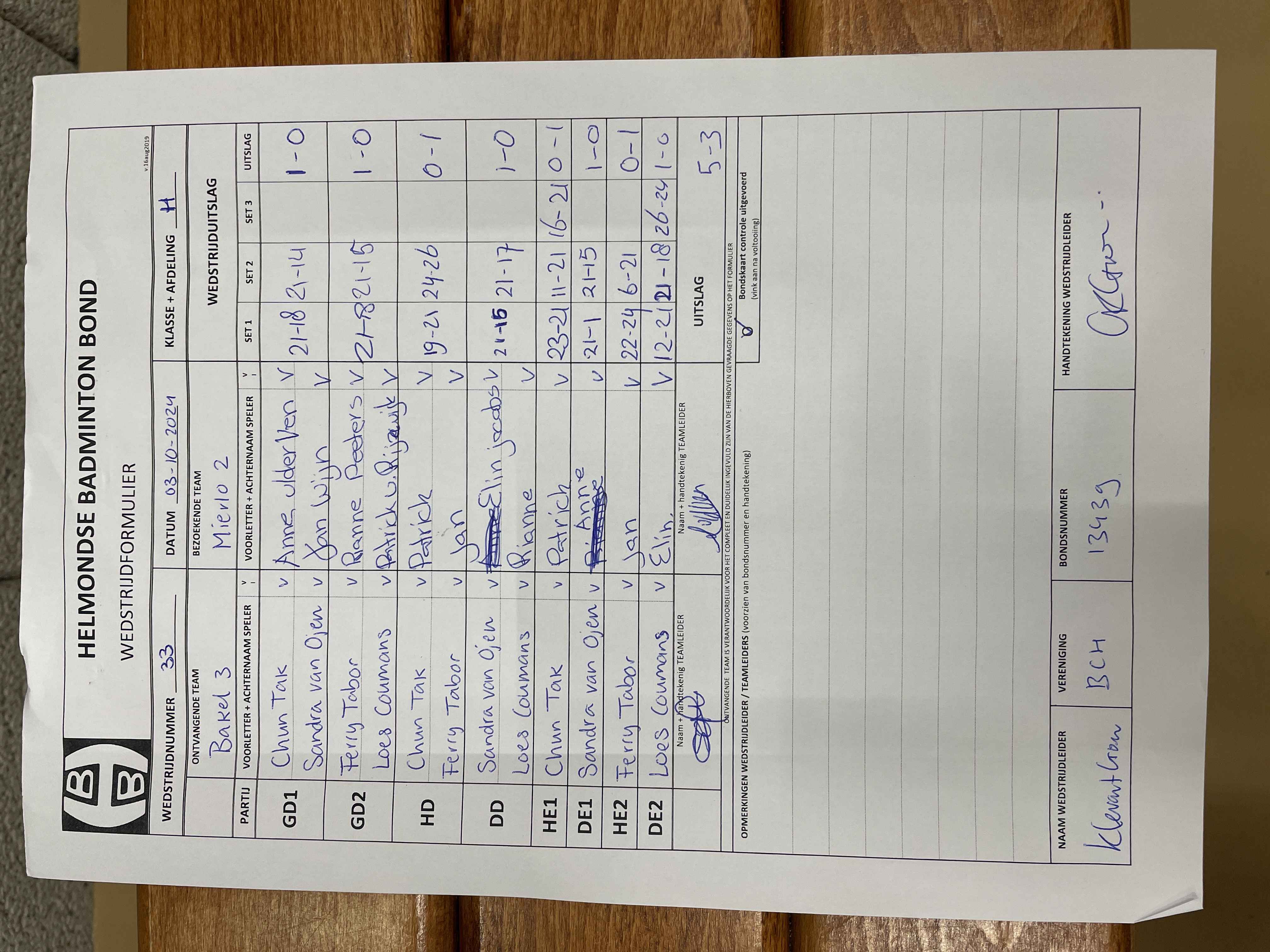 | 33 | do. 03-10-2024 | Bakel 3 | - | Mierlo 2 | 2 | 5 - 3 | |||