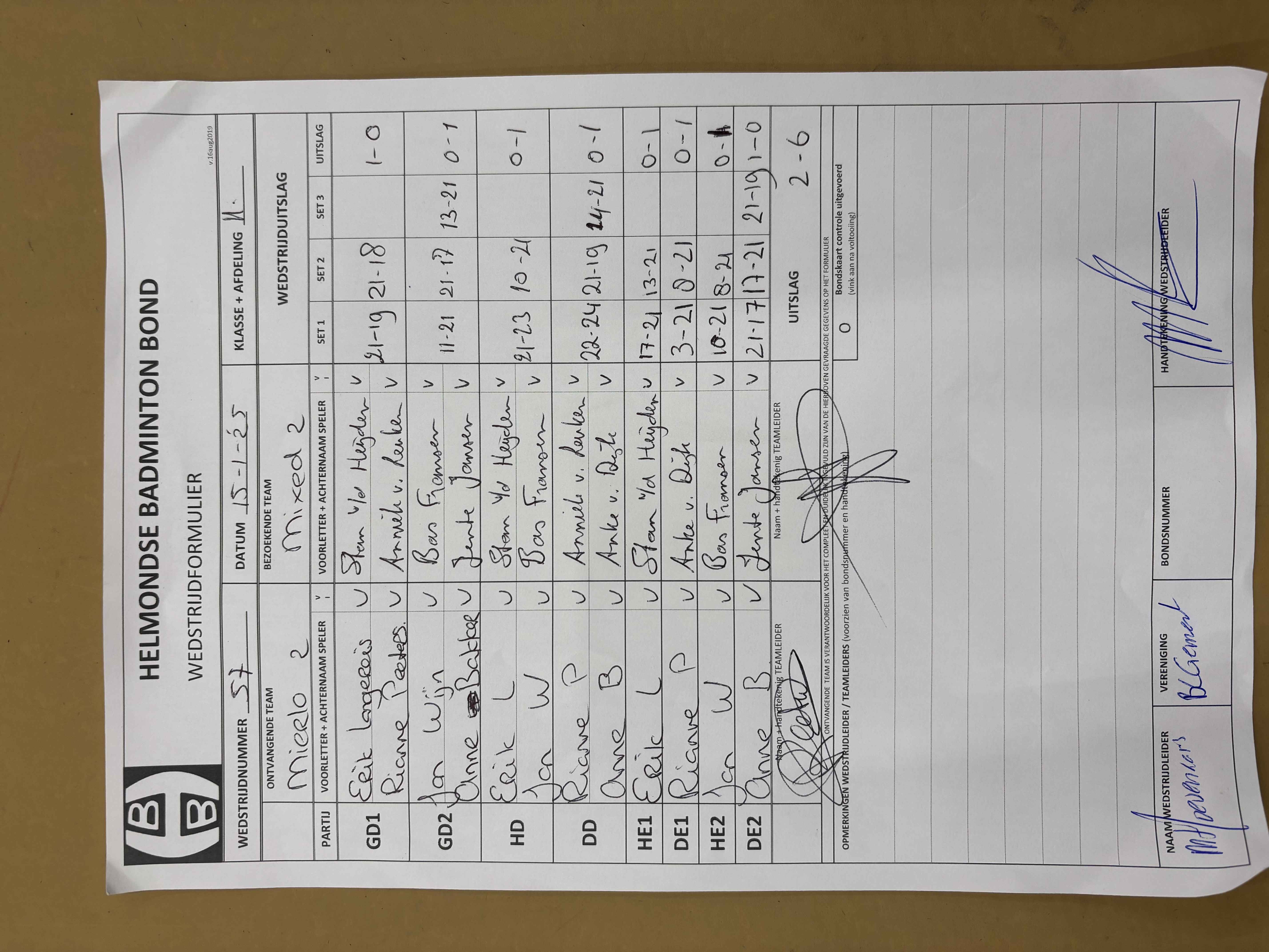 | 57 | wo. 15-01-2025 | Mierlo 2 | - | Mixed 2 | 2 | 2 - 6 | |||
