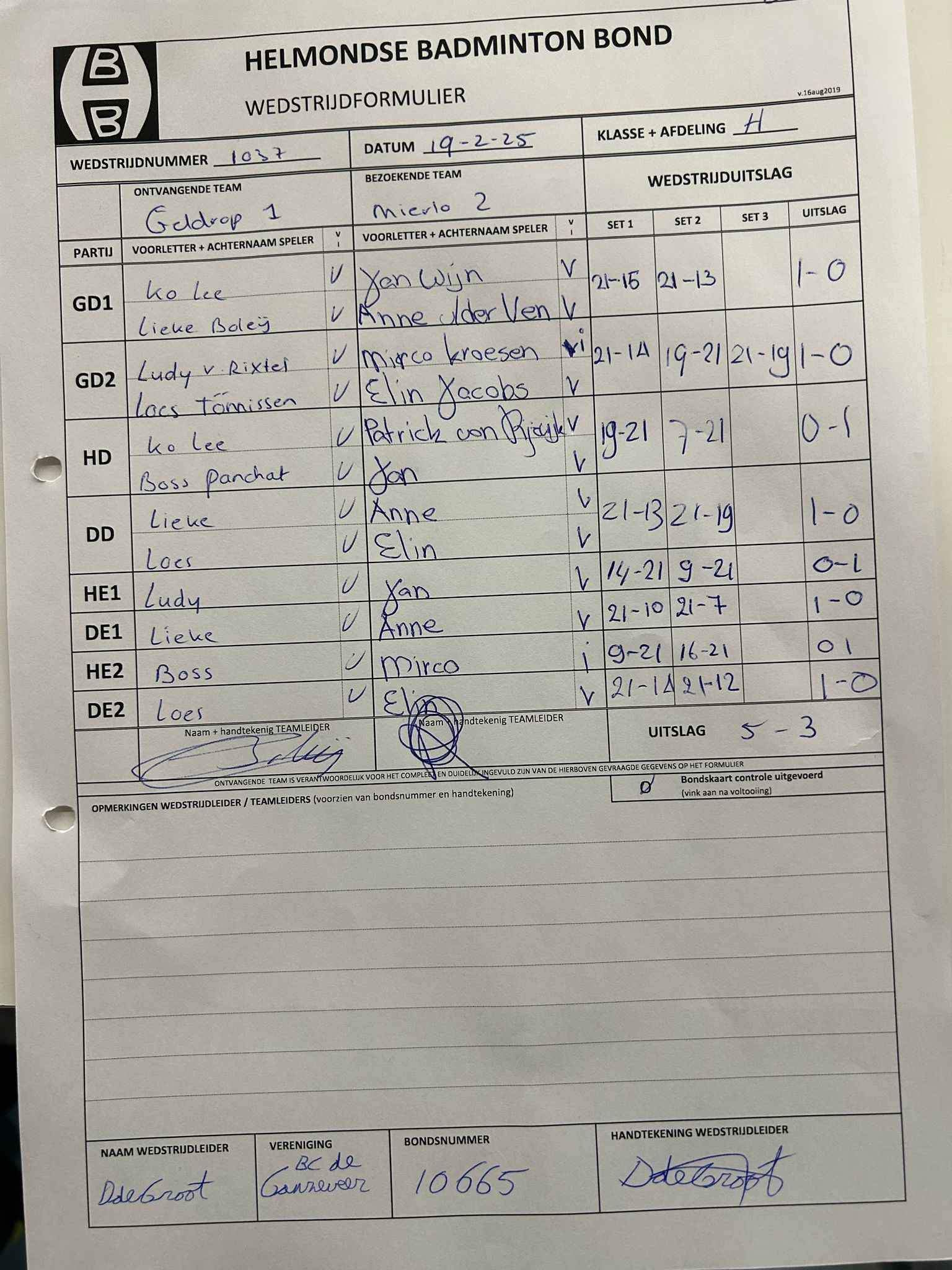 | 1037 | wo. 19-02-2025 | Geldrop 1 | - | Mierlo 2 | 2 | 5 - 3 | |||
