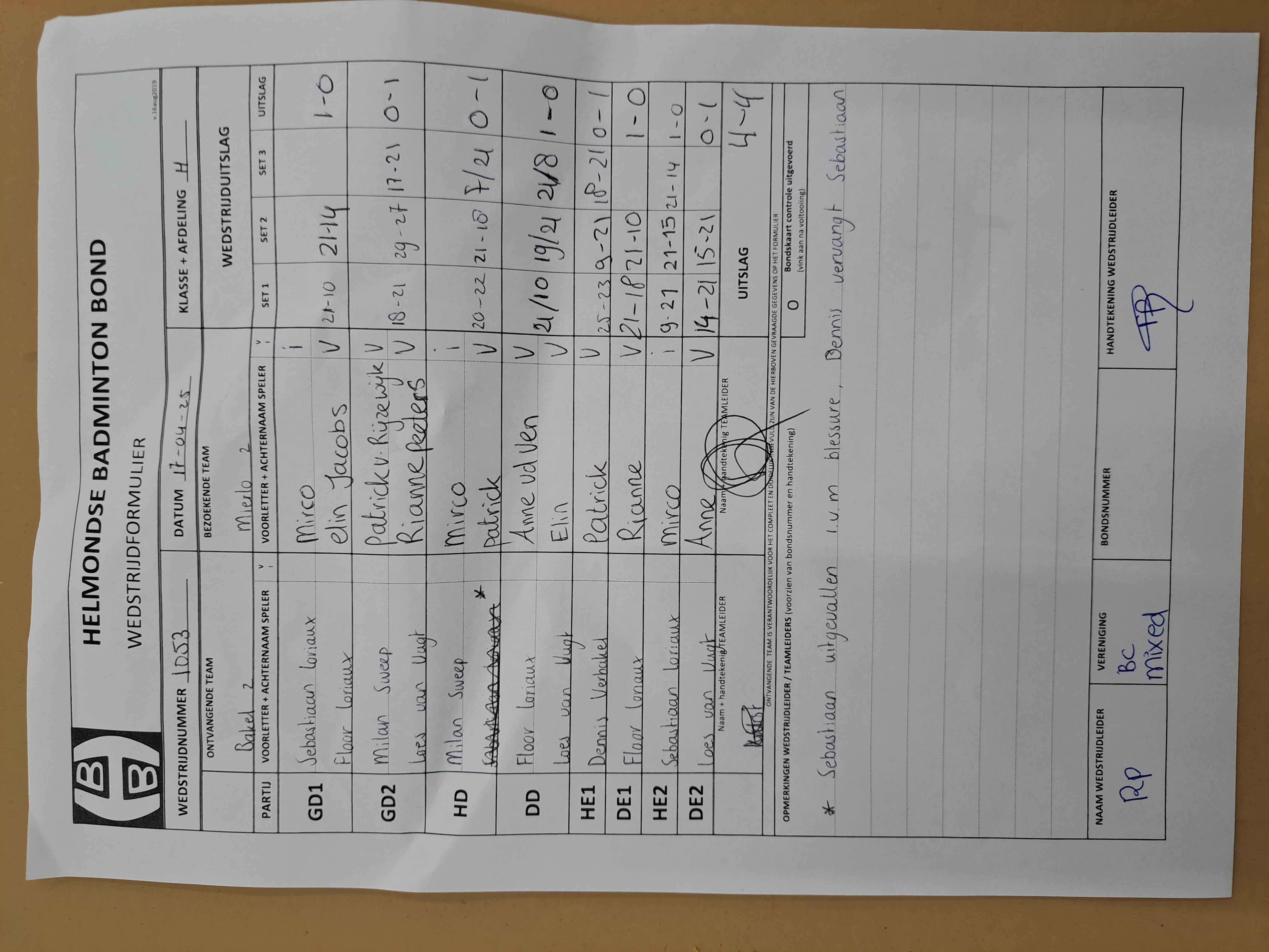 | 1053 | do. 17-04-2025 | Bakel 2 | - | Mierlo 2 | 4 | 4 - 4 | |||