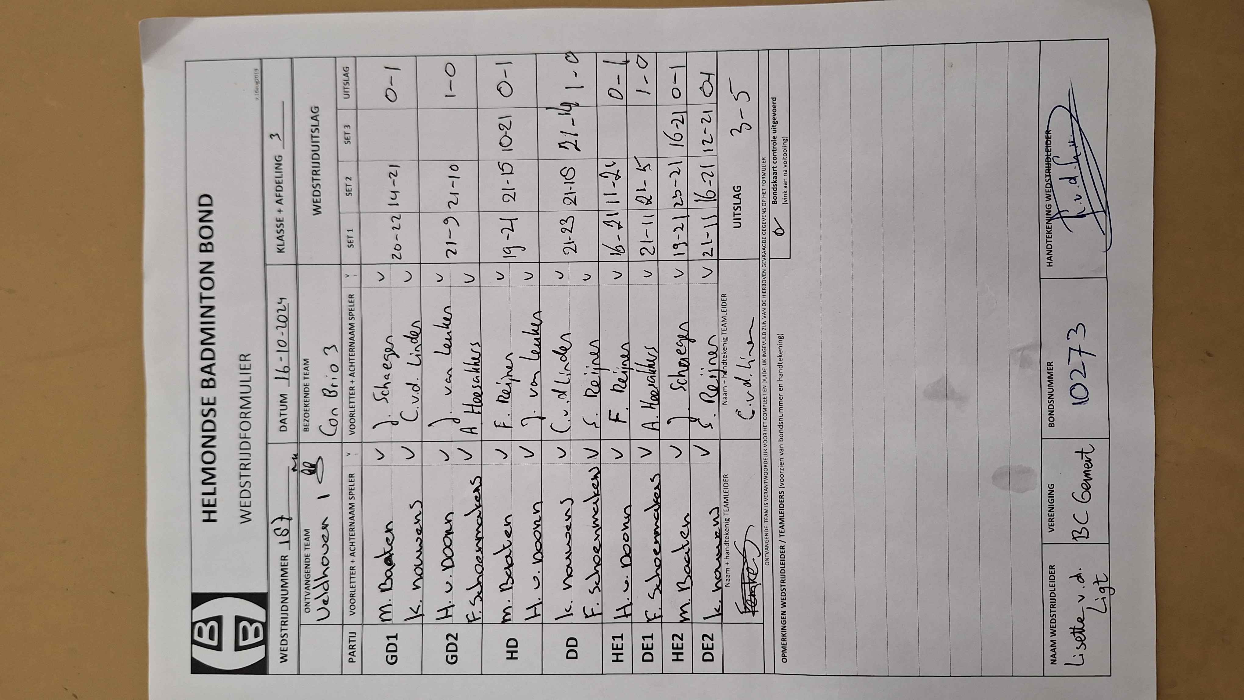 | 187 | wo. 16-10-2024 | Veldhoven 1 | - | Con Brio 3 | 15 | 3 - 5 | |||