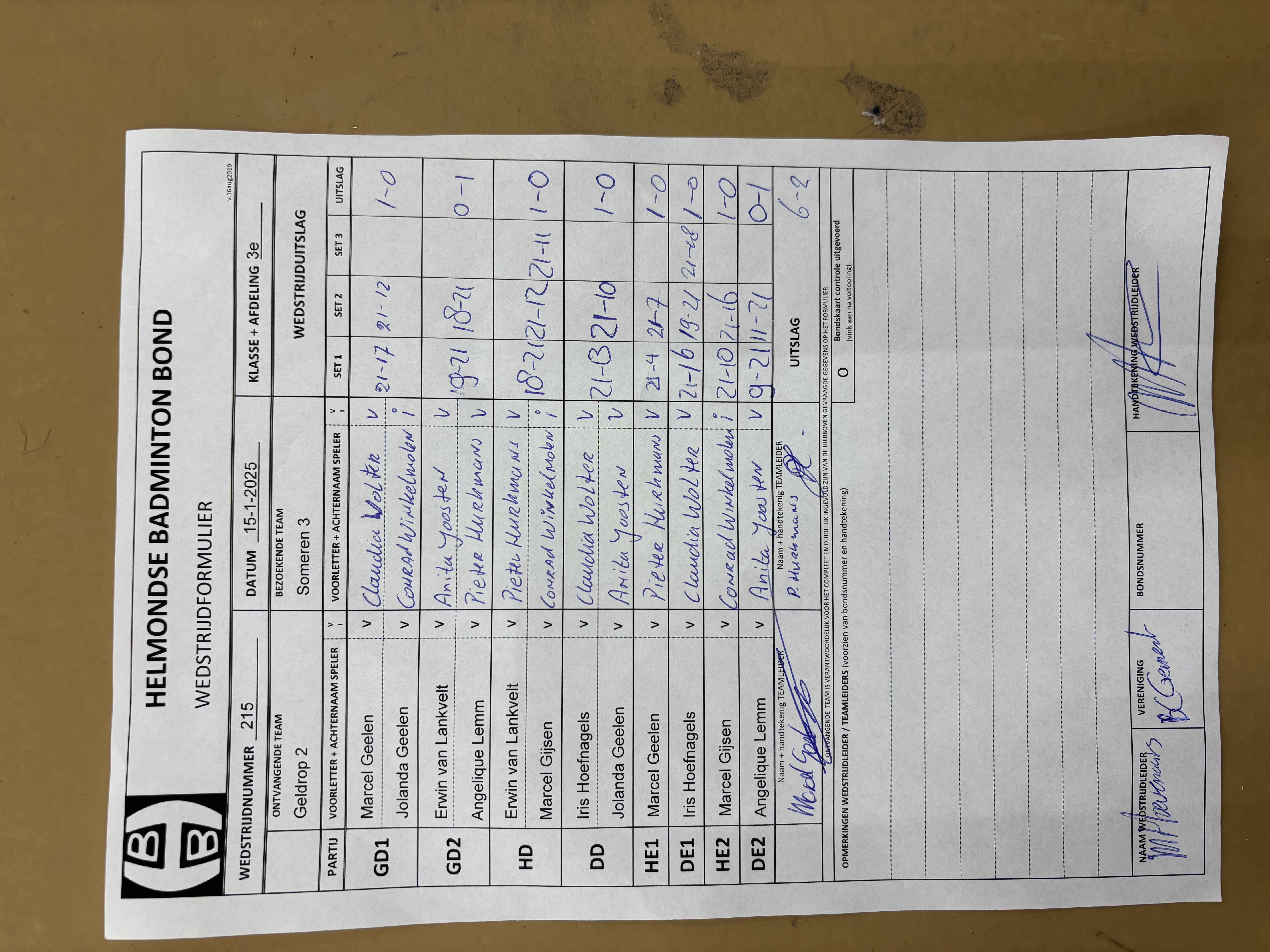 | 215 | wo. 15-01-2025 | Geldrop 2 | - | Someren 3 | 12 | 6 - 2 | |||